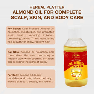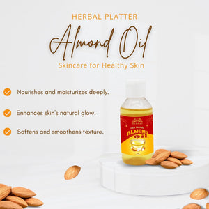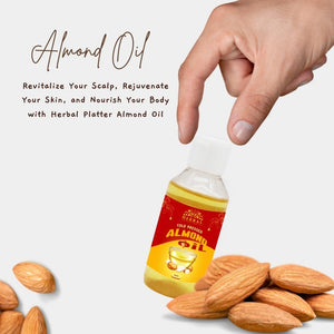 Herbal Platter Almond Oil is a luxurious blend meticulously crafted to nurture both skin and hair. Enriched with vitamin E, antioxidants, and essential fatty acids, this exquisite oil deeply moisturizes the skin, unveiling a radiant complexion while combating dryness and signs of aging. Its anti-inflammatory properties soothe irritation and redness, making it perfect for sensitive or acne-prone skin types. For hair care, Herbal Platter Almond Oil is a true indulgence. By penetrating deeply into the scalp, it nourishes hair follicles and strengthens strands, reducing breakage and promoting healthy growth. Its moisturizing effects tame frizz and add shine, leaving hair soft, lustrous, and more manageable. Beyond its cosmetic benefits, Herbal Platter Almond Oil offers therapeutic properties. Ideal for massage, it eases muscle tension and promotes relaxation. Its hypoallergenic nature ensures compatibility with sensitive skin, minimizing the risk of adverse reactions. Elevate your self-care routine with Herbal Platter Almond Oil. Whether used alone or incorporated into your favorite beauty formulations, this blend promises rejuvenation and revitalization, revealing your natural beauty from head to toe.