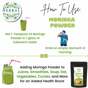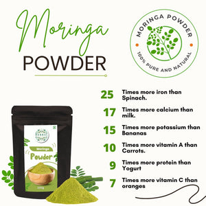 Herbal Platter Moringa Leaves Powder. Crafted from the revered Moringa Oleifera tree, this Ayurvedic gem is a symphony of 90 essential nutrients and 46 potent antioxidants. Nourish your body with a rich blend of vitamins A, B1, B2, B3, B6, K, E, and C, delivering unparalleled nourishment. Elevate your wellness journey with immunity-boosting, skin-revitalizing, and hair-stimulating properties. Experience the difference with Moringa Marvel by Herbal Platter, and unlock the full potential of your health and vitality.