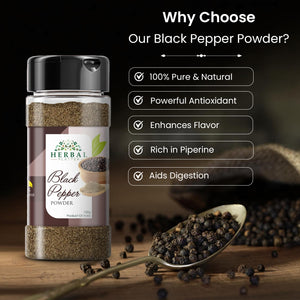 Why Choose Our Black-Pepper Powder? Crafted with utmost care, our Herbal Platter Black Pepper Powder stands out for its exceptional quality and authentic taste. Every sprinkle transports you to a world of rich flavours, transforming ordinary meals into extraordinary delights. Our commitment to sourcing the best ingredients guarantees that you're getting a product that's pure, potent, and full of character. Incorporate the Excellence of Black Pepper Powder: Elevate your cooking game with the enchanting allure of black pepper. From marinades to sauces, and stews to desserts, our Herbal Platter Black-Pepper Powder will become your go-to seasoning for all occasions. Discover the remarkable fusion of tradition and taste, conveniently packed for your culinary exploration. Herbal Platter's Black Pepper Powder is more than just a spice – it's a gateway to a world of flavours and experiences. With its premium quality, irresistible aroma, and versatile nature, this black pepper is your ticket to elevating every dish you create. Unleash your culinary creativity and unlock the essence of exquisite flavours with our exceptional Herbal Platter Black Pepper Powder.