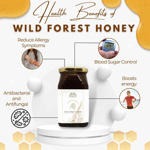 Welcome to the world of Herbal Platter's Raw Unprocessed Wild Forest Honey - the purest and most natural honey you can find! Our honey is sourced from wild forests, where bees collect nectar from wildflowers, resulting in a unique flavor profile and a natural sweetness that is unparalleled. Our honey is 100% pure and unpasteurized, which means that it retains all of its natural goodness, including enzymes, antioxidants, and antibacterial properties. Unlike processed honey, which is often heated and filtered, our honey is completely unprocessed, ensuring that you get the best possible product. One of the top benefits of our raw wild forest honey is its ability to aid in weight loss. Unlike processed sugar, which is high in calories and can lead to weight gain, our honey is a natural sweetener with fewer calories, making it a healthier choice for weight loss. It also helps to control sugar cravings, making it easier to stick to a healthy eating plan. Our raw wild forest honey is also rich in antioxidants, which can help protect your body from free radical damage, reducing the risk of chronic diseases such as cancer and heart disease. It's also a great natural source of energy, making it the perfect addition to your morning smoothie or as a pre-workout snack. But that's not all - our raw wild forest honey can also help improve your immune system function, thanks to its natural enzymes and antibacterial properties. It can also improve digestion, thanks to its prebiotics, which support the growth of good gut bacteria, leading to better digestion and nutrient absorption. Last but not least, our raw wild forest honey has antibacterial and anti-inflammatory properties that can help soothe sore throats, heal wounds, and reduce inflammation. It's the perfect natural remedy for all sorts of ailments, from coughs and colds to cuts and scrapes. So why not try our Herbal Platter Raw Unprocessed Wild Forest Honey today? We offer it in 250gm & 500gm glass jars, so you can choose the size that's right for you. Our honey is pure, natural, and delicious - the perfect addition to your healthy lifestyle. Order now and experience the many benefits of raw wild forest honey for yourself!