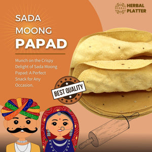 Experience the true taste of Rajasthan with Herbal Platter Sada Moong Papad. Order your pack today and relish the handcrafted flavors. Discover the magic of Saji-infused papad with a milder spice profile, where authenticity and quality come together in every bite. Let Herbal Platter be your gateway to a delightful culinary journey.