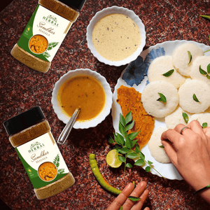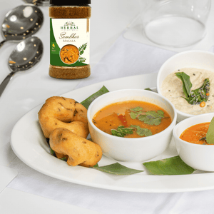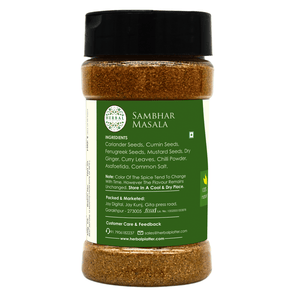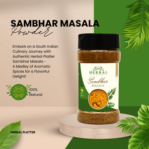 Welcome to the world of Herbal Platter, where we take pride in presenting our finest creation: "Sambhar Masala" - a delectable blend of traditional flavours with a herbal twist. Herbal Platter's Sambhar Masala is an extraordinary culinary companion, carefully crafted to elevate your everyday meals to a whole new level of gastronomic delight. Bursting with the goodness of handpicked herbs and aromatic spices, our Sambhar Masala promises to bring an authentic taste of South India right to your kitchen. Immerse yourself in the rich aroma and balanced flavours that our Sambhar Masala offers, making it an essential ingredient for creating the perfect sambhar, whether it's for idlis, dosas, rice, or any other dish you desire. Discover the fusion of tradition and innovation as you savour the goodness of Herbal Platter's Sambhar Masala, the secret to unlocking a world of soul-satisfying meals with every pinch. Treat your taste buds to an unforgettable journey - experience the essence of Herbal Platter's Sambhar Masala today!