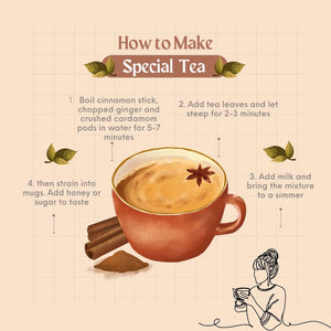 Say goodbye to mundane mornings and sluggish afternoons with the energizing power of our Premium Assam Chai Patti. Each sip invigorates your senses, providing a natural boost of vitality and focus that keeps you alert and productive throughout the day.