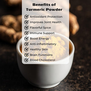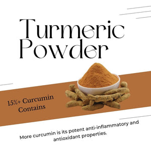 Herbal Platter Turmeric Powder, meticulously crafted to enhance both your culinary delights and your well-being. our turmeric powder boasts a potent concentration of 15%+ curcumin, the active compound responsible for many of its health benefits. This ensures that with every serving, you're harnessing the full power of this golden spice. On the wellness front, turmeric is renowned for its digestive support. It aids in digestion and can alleviate various digestive discomforts, making it an excellent addition to your daily routine for promoting a healthy gut. Additionally, our turmeric powder provides robust immune support. Packed with antioxidants, it fortifies your body's natural defenses, helping you stay resilient against common infections and illnesses. For those concerned about joint health, turmeric's anti-inflammatory properties offer relief from joint pain and stiffness, supporting overall joint mobility and comfort. Heart health is another area where turmeric shines. Studies suggest that it may help maintain healthy cholesterol levels and support cardiovascular function, contributing to a healthy heart. Turmeric may play a role in supporting brain health. Its neuroprotective properties offer potential protection against cognitive decline, promoting sharper cognitive function as you age. Turmeric benefits extend to your skin. Its anti-inflammatory and antioxidant properties work wonders for your skin health, reducing inflammation, combating free radicals, and promoting a radiant complexion. Herbal Platter Turmeric Powder into your daily regimen and experience the holistic benefits it brings to your life, from the kitchen to your overall well-being. Herbal Platter proudly presents our finest offering, Turmeric Powder - a premium quality turmeric powder sourced directly from the farms of Meghalaya, India. Our Turmeric Powder is a unique and rare variety of turmeric that is known for its 15%+ curcumin content, which gives it a vibrant yellow color and a distinct aroma. Add a touch of Turmeric Powder to your cooking, and experience the rich flavors and health benefits it offers. Whether you are making a curry, a marinade, or a seasoning, our turmeric powder is sure to elevate your dish to the next level. Trust Herbal Platter to bring you the best of nature's bounty, and try our Turmeric Powder today!