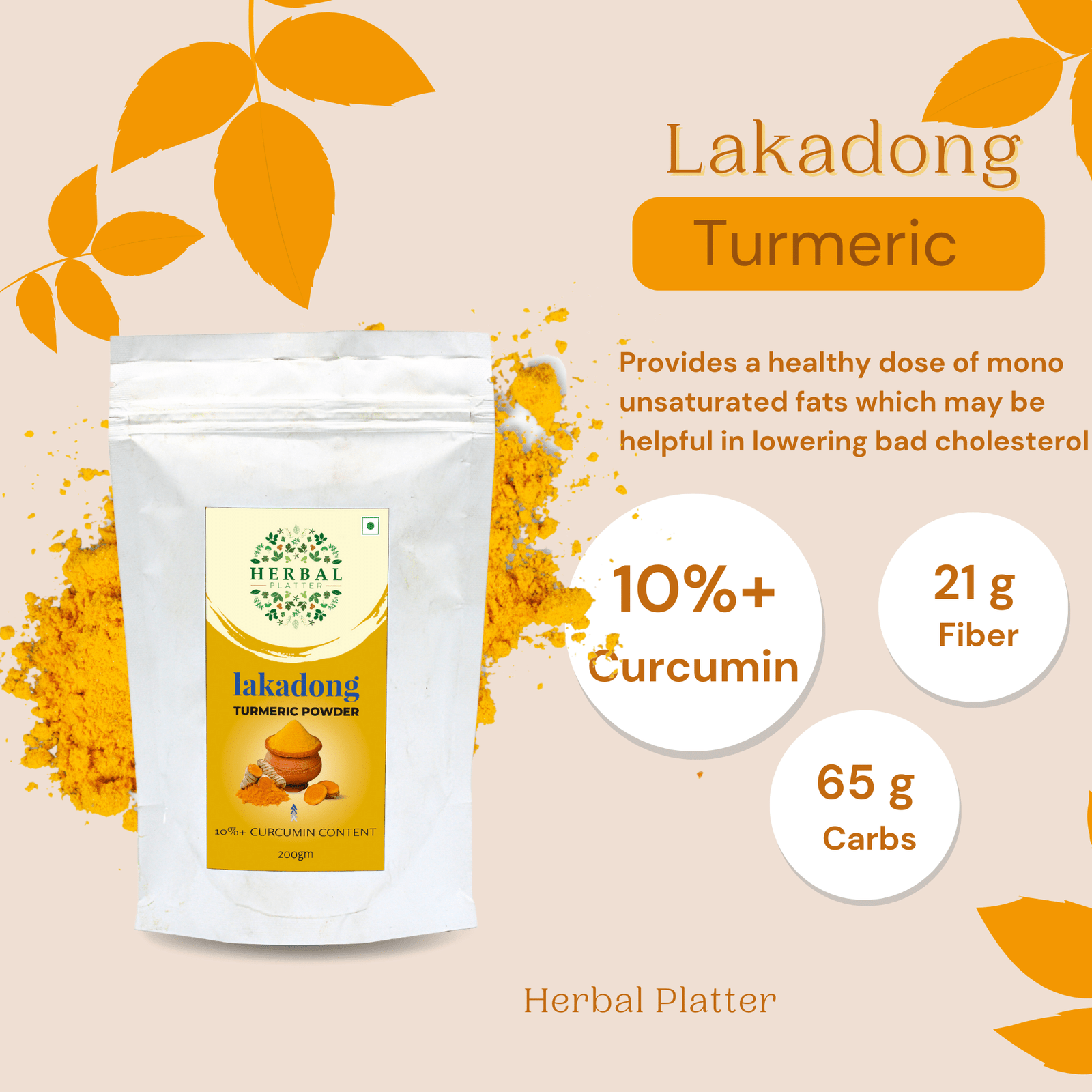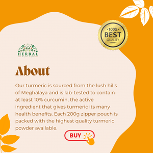 Are you looking for a natural way to enhance your health and wellbeing? Look no further than Herbal Platter Lakadong Turmeric Powder! Our turmeric is sourced from the lush hills of Meghalaya and is lab-tested to contain at least 10% curcumin, the active ingredient that gives turmeric its many health benefits. Each 200g zipper pouch is packed with the highest quality turmeric powder available. Here are just a few reasons why you should make Herbal Platter Lakadong Turmeric Powder a regular part of your diet: