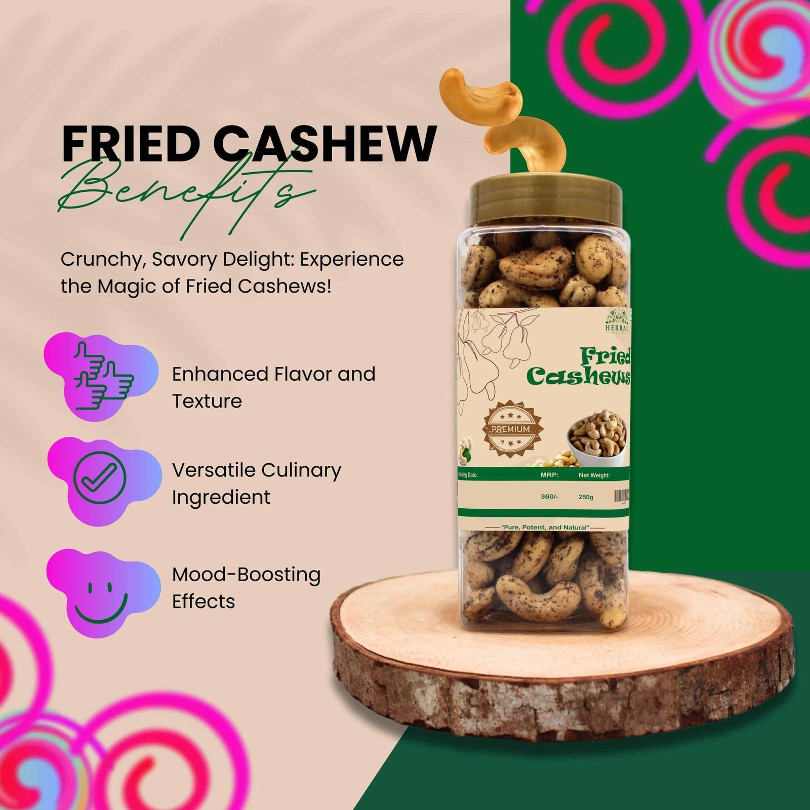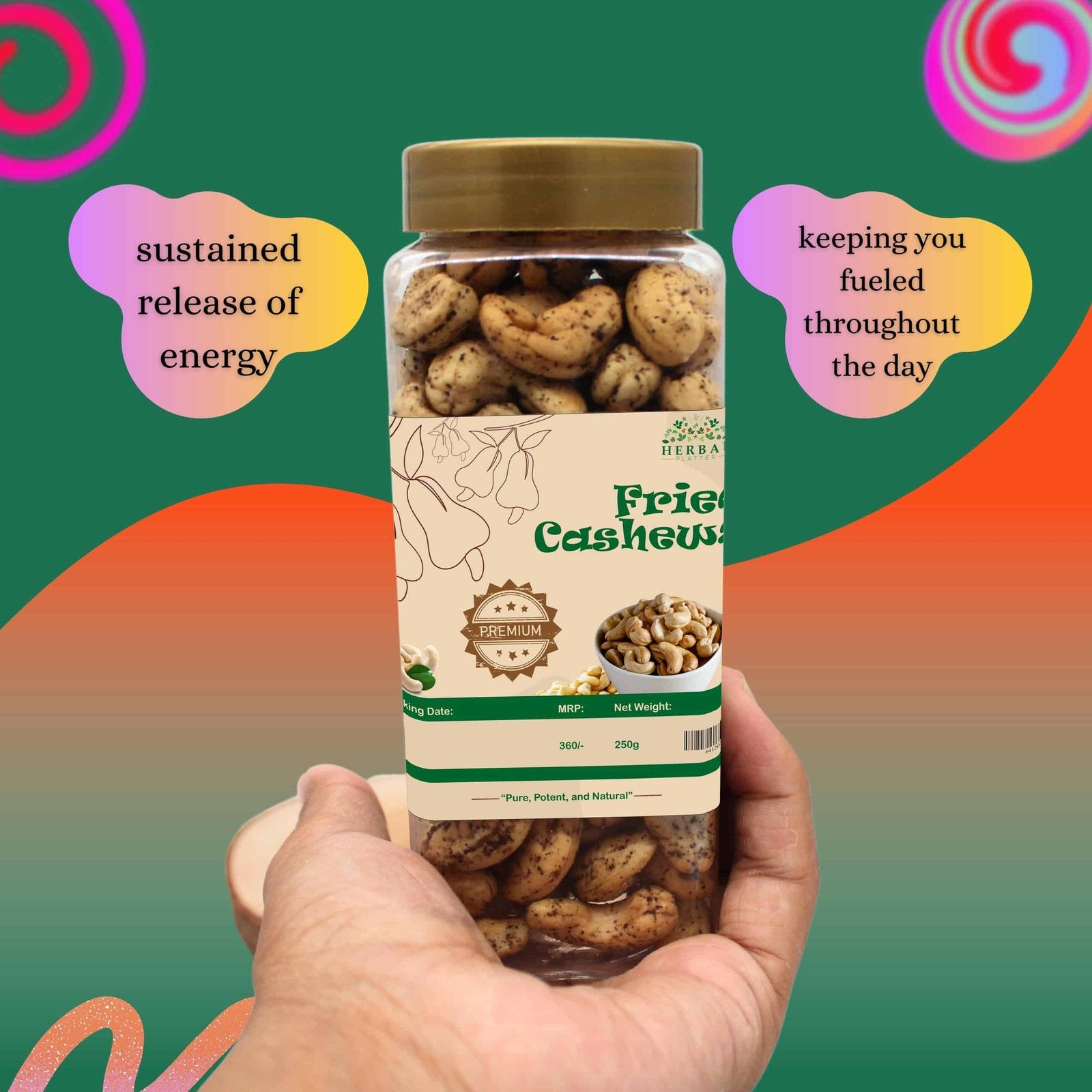 - Flavorful Sensation: Each Fried Cashew nut is a burst of flavour.The combination of the cashew's natural richness and the herbal infusion creates a symphony of tastes that dance on your taste buds.