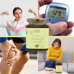 In addition to its weight loss benefits, our Moringa honey is also loaded with antioxidants and anti-inflammatory compounds that strengthen the immune system and promote overall health. It also aids in digestion and soothes gastrointestinal issues like bloating and constipation, making it an excellent choice for those with digestive problems.