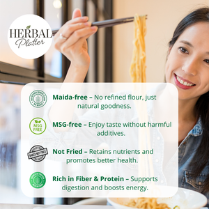 Experience the deliciously healthy twist of Herbal Platter Pearl Millet Noodles. Made from wholesome Barley flour and whole wheat flour, cold-pressed oil, and a hint of rock salt, these noodles are the ultimate alternative to junk food. Each packet also includes a savoury tastemaker to enhance the taste and make every bite a joy! A perfect choice for kids seeking a healthier yet scrumptious snack. Ready in minutes, they're guilt-free snacking at its best!