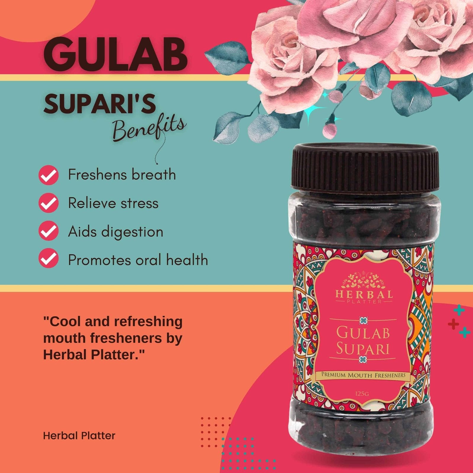3. Sociable Pleasure: Share the joy of Herbal Platter Gulab Supari Mouth Freshener with your friends and family. Its vibrant colors and inviting aroma make it an excellent addition to gatherings, social events, and special occasions.