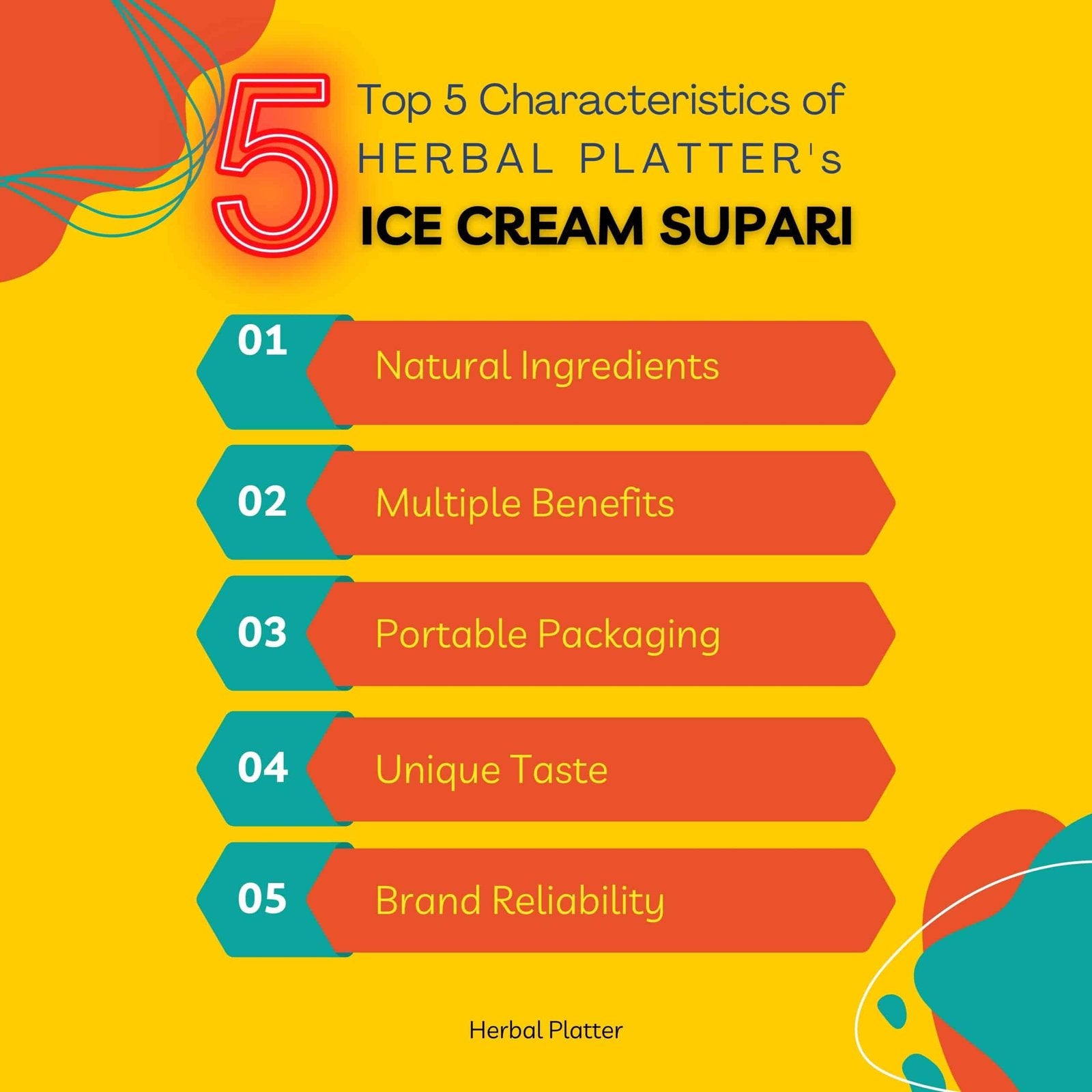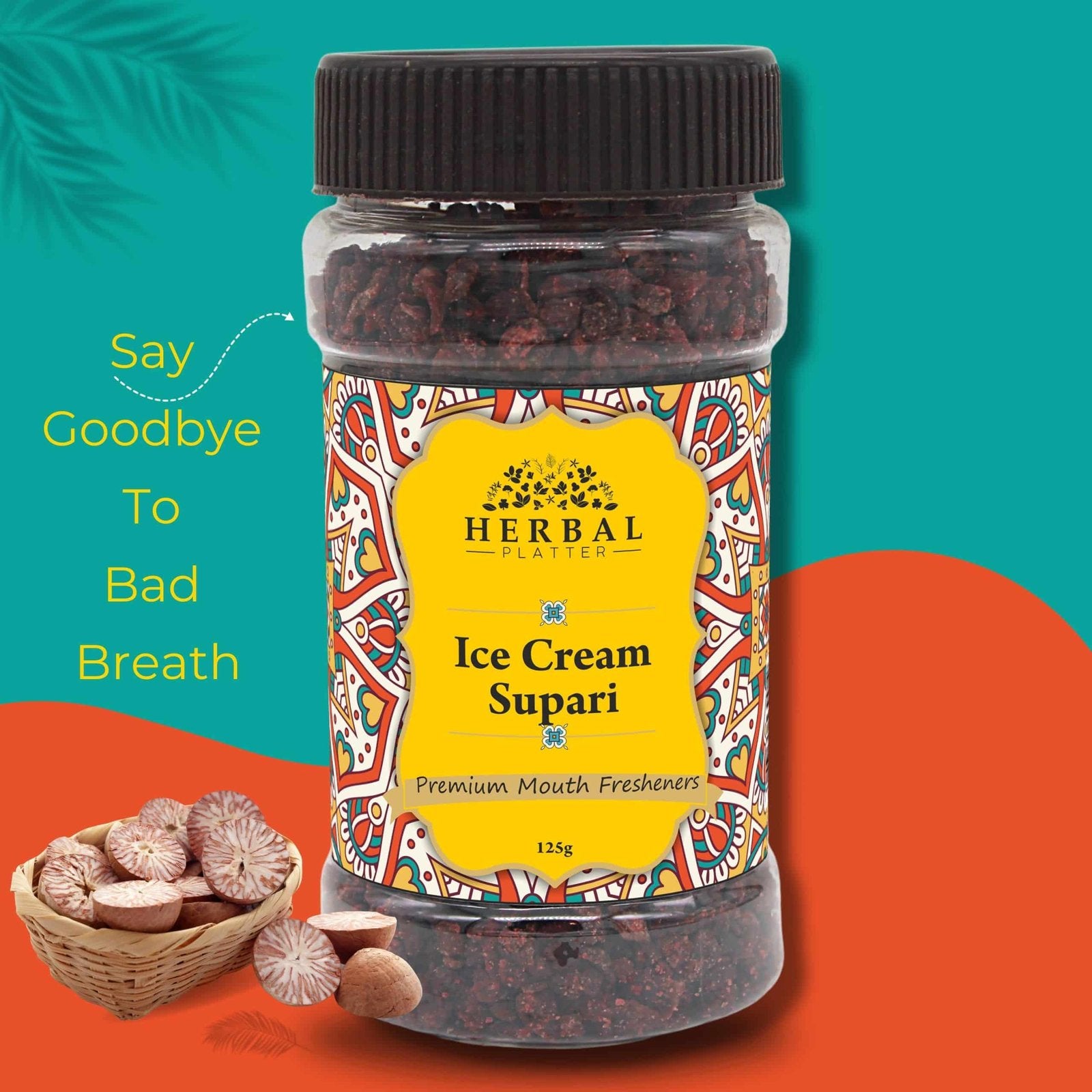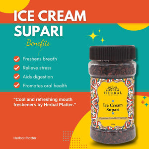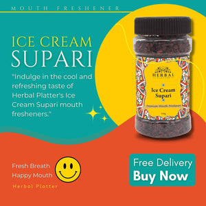 - Herbal Platter Blend: Carefully selected herbs and aromatic spices are infused into every piece of Ice Cream Supari, creating a unique herbal platter that not only refreshes your breath but also offers potential health benefits from the natural ingredients used.