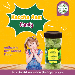 Unleash the tangy magic of Herbal Platter’s Kaccha Aam Candy, and enjoy a nostalgic burst of raw mango flavor in every bite.