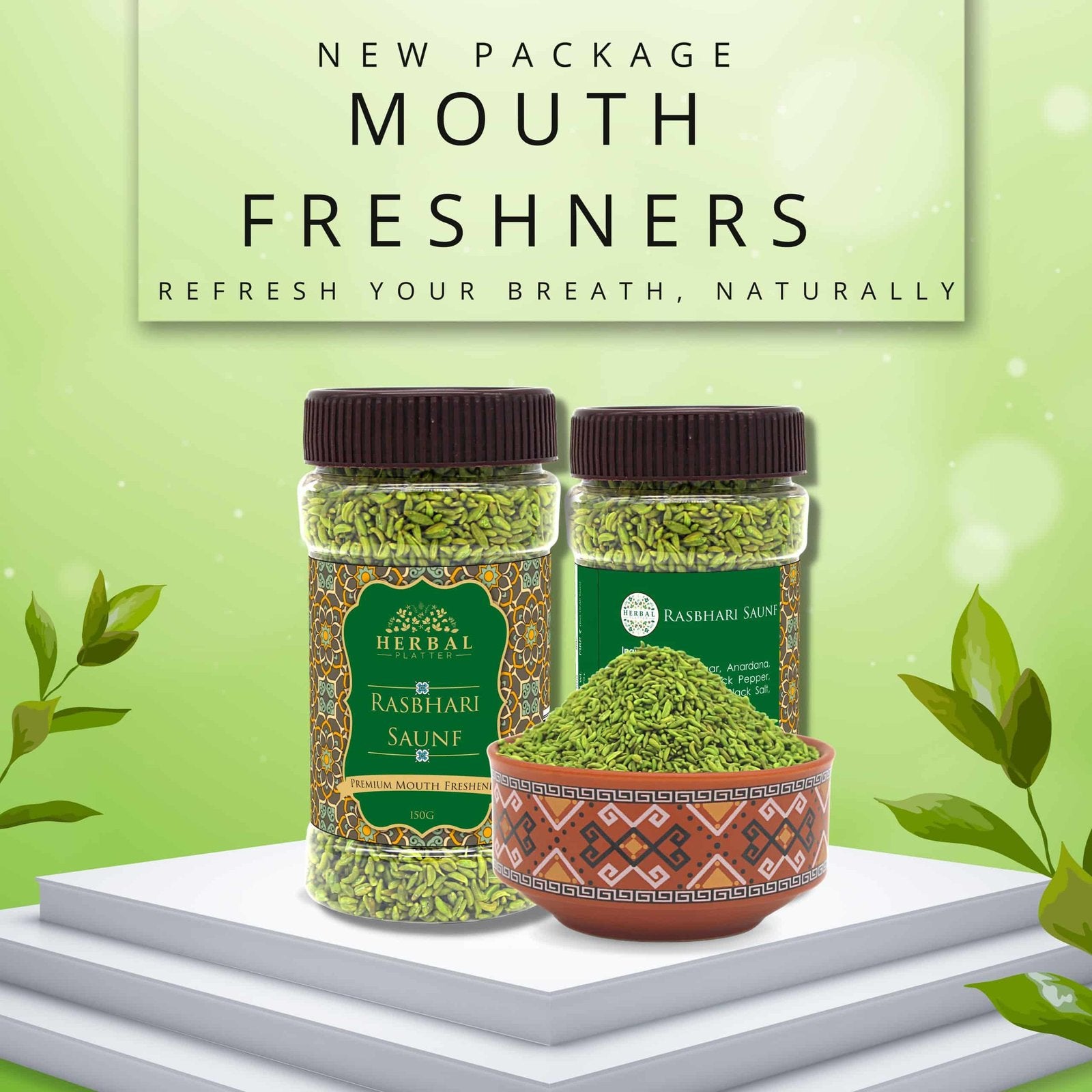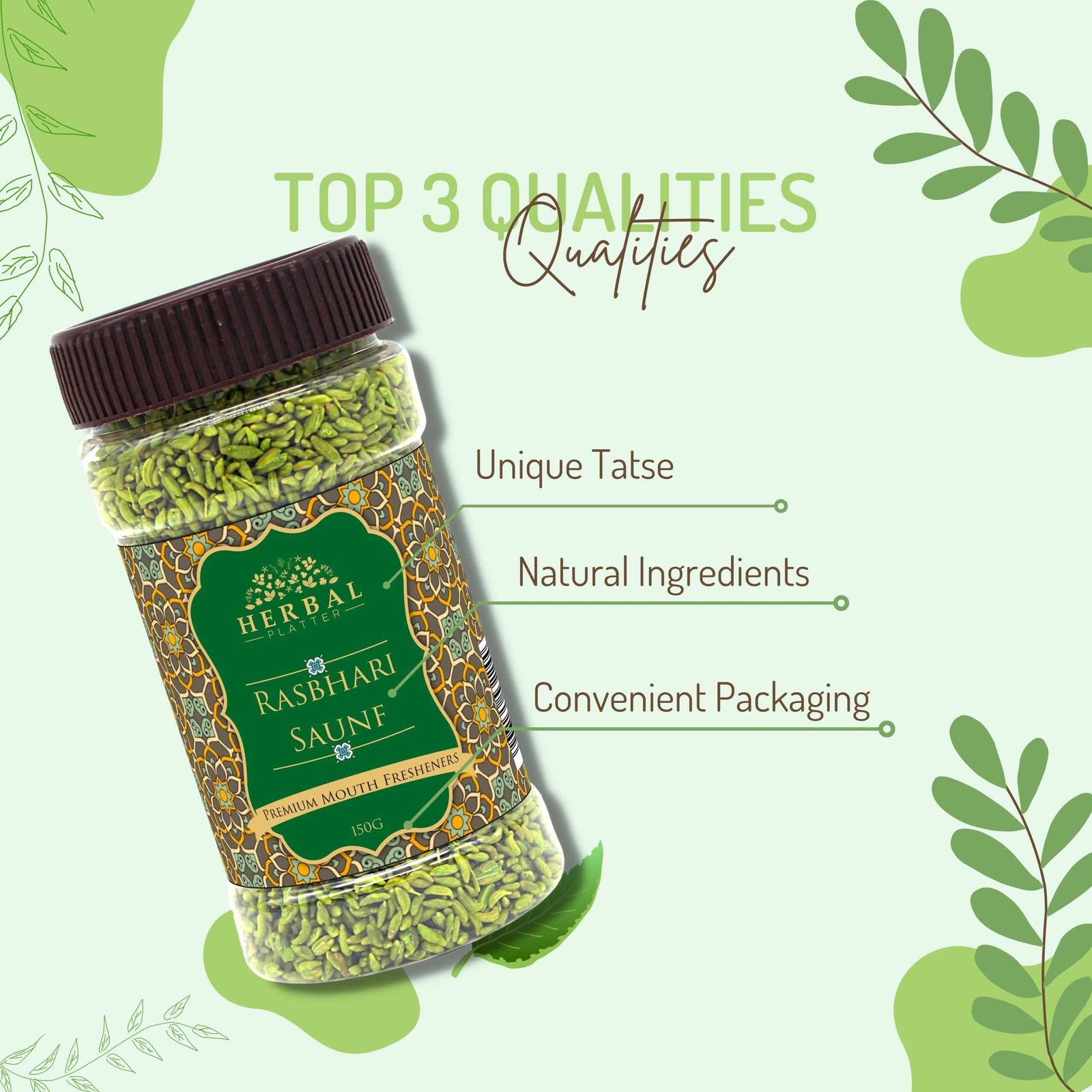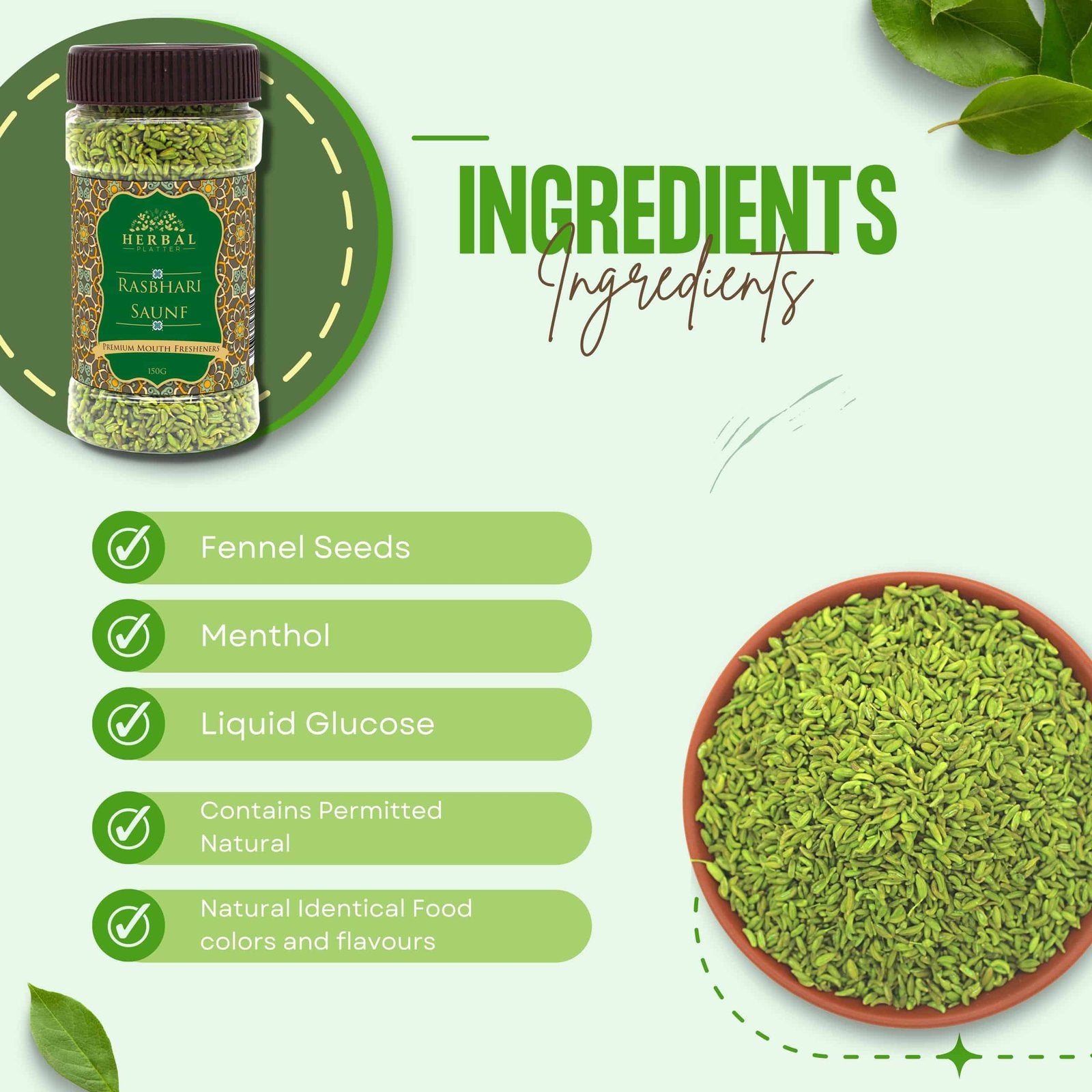 Elevate your snacking experience with Herbal Platter Rashbhari Saunf Mouth Freshener (Mukhwas). Let the aromatic flavors transport you to a world of taste, tradition, and refreshment. Indulge in the symphony of saunf, rasbhari, and masalas, and make every moment more memorable. Order now and savor the goodness!