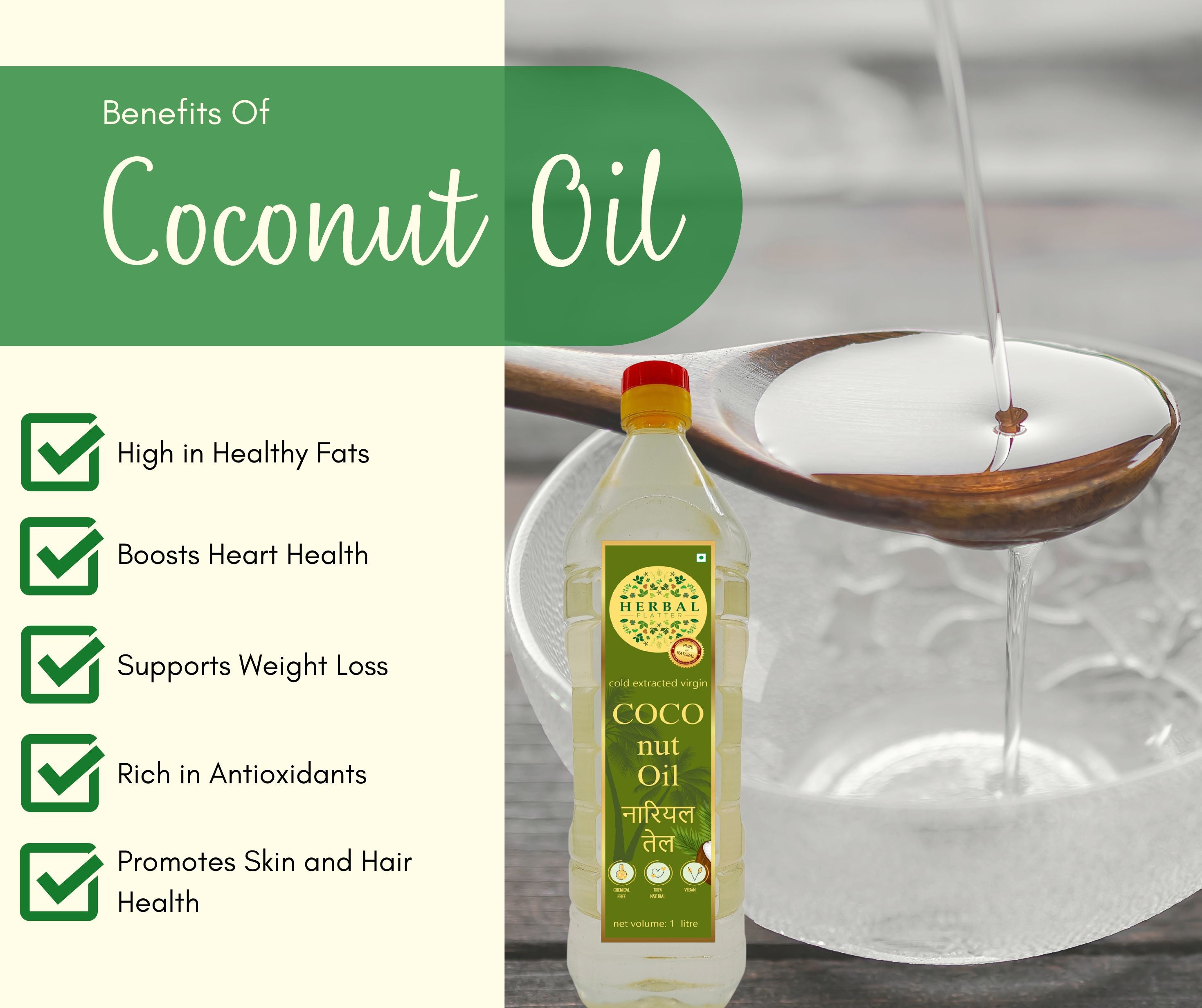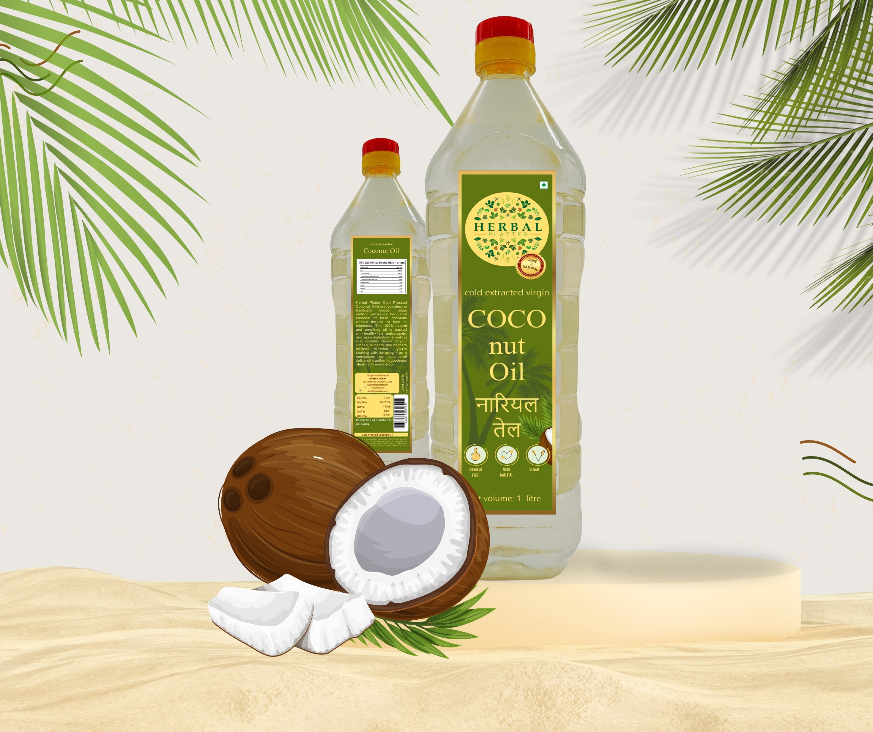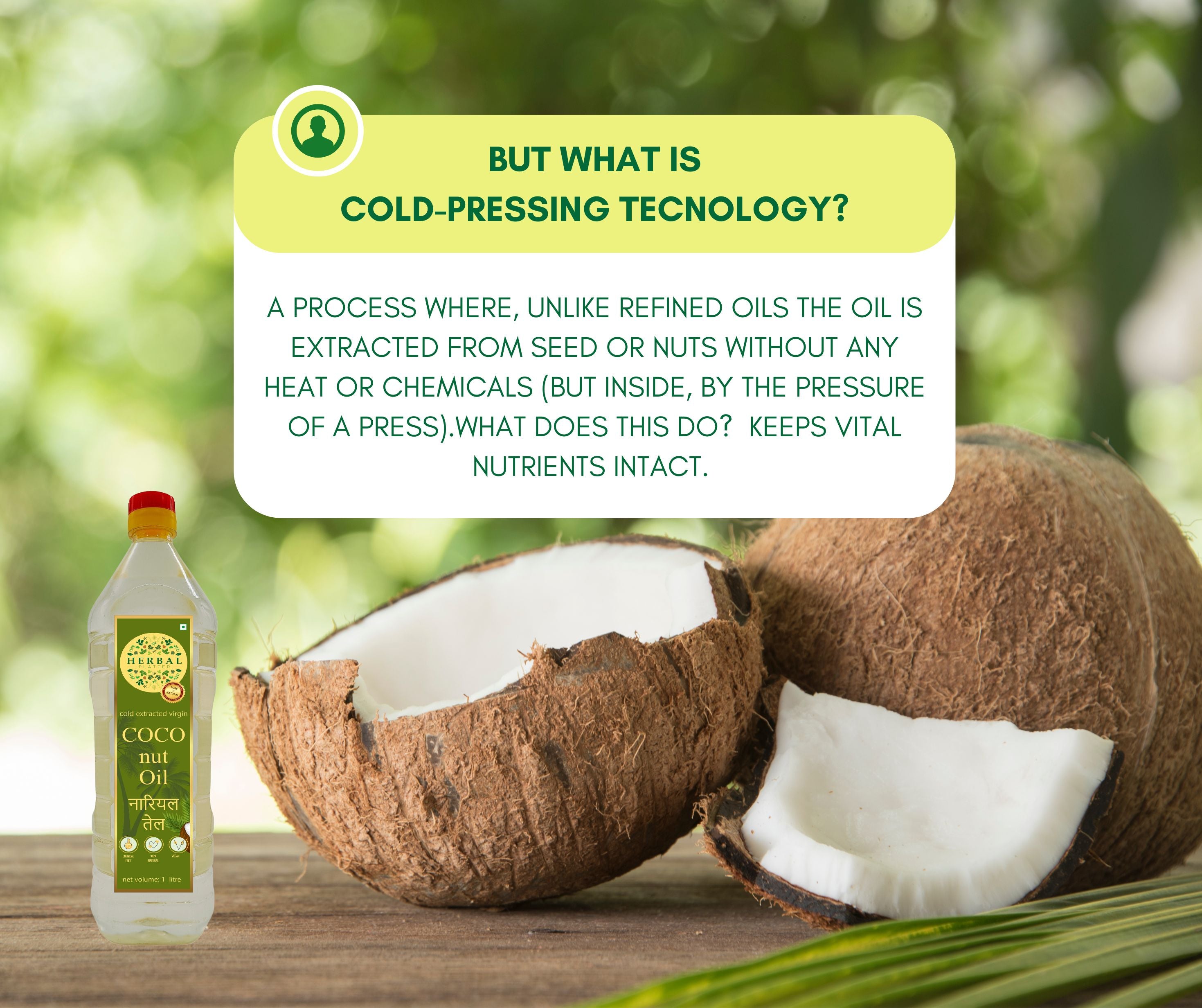 Cold-Pressed Coconut Oil | 100% pure and natural | 1 Ltr | 500ml