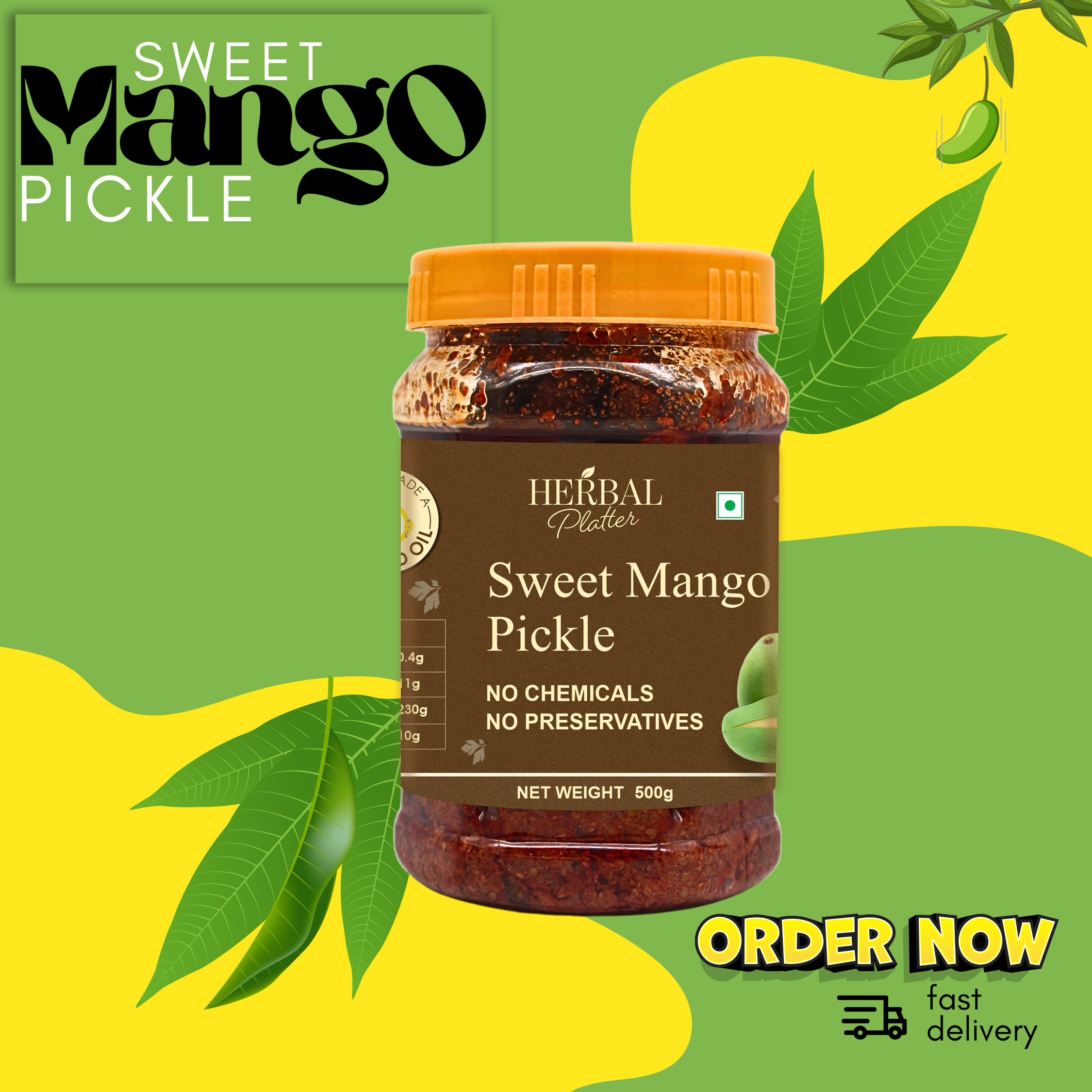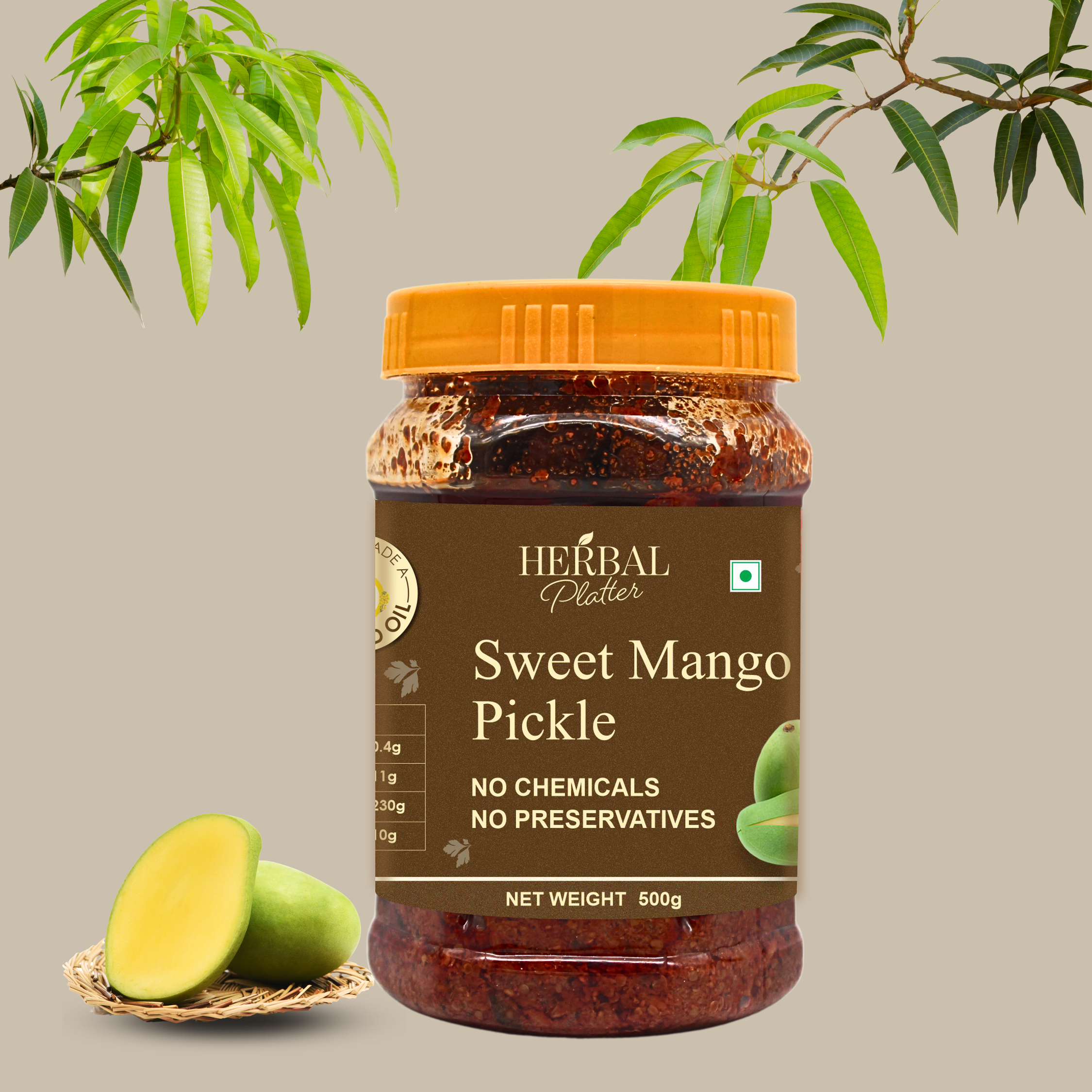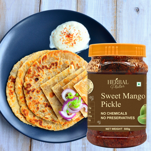 Introducing Herbal Platter Rajasthani Sweet Mango Pickle, a true embodiment of Rajasthan's culinary heritage. Made in a traditional manner, this pickle is a delightful blend of flavors that captures the essence of Rajasthan's rich cultural traditions. With no added chemicals or preservatives, it comes in a 500g jar, allowing you to savor the sweetness of mangoes all year round.
