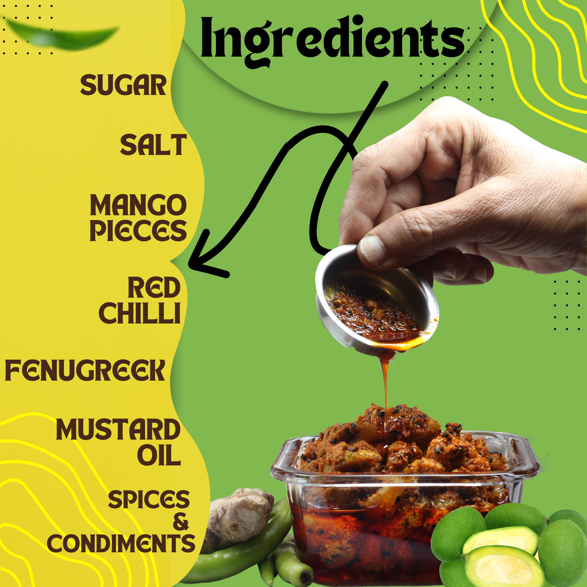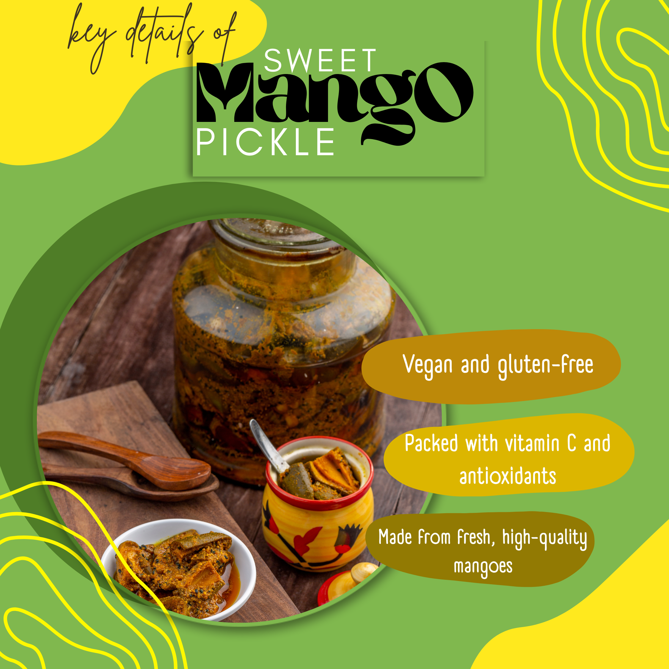 Packaged in a 500g jar, our pickle ensures you have an ample supply to enjoy. The sturdy packaging preserves its freshness and flavors, allowing you to savor it over time. Whether you're hosting a gathering or adding a touch of Rajasthani cuisine to your everyday meals, our Rajasthani Sweet Mango Pickle is the perfect accompaniment.