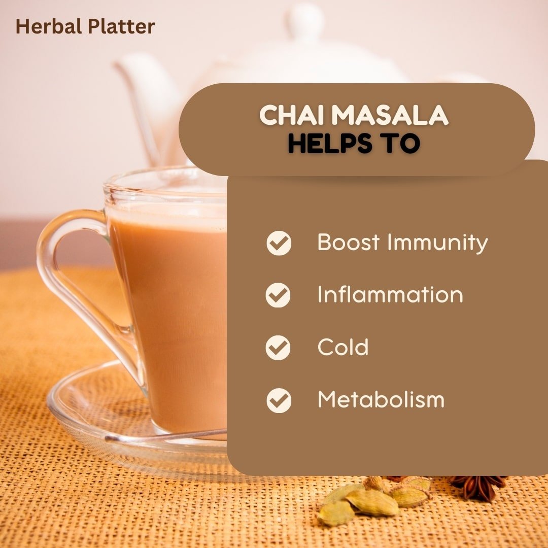 • May help improve mental focus and concentration: With its caffeine content, Herbal Platter Chai Masala aids in enhancing mental clarity and focus, promoting sustained concentration throughout the day.