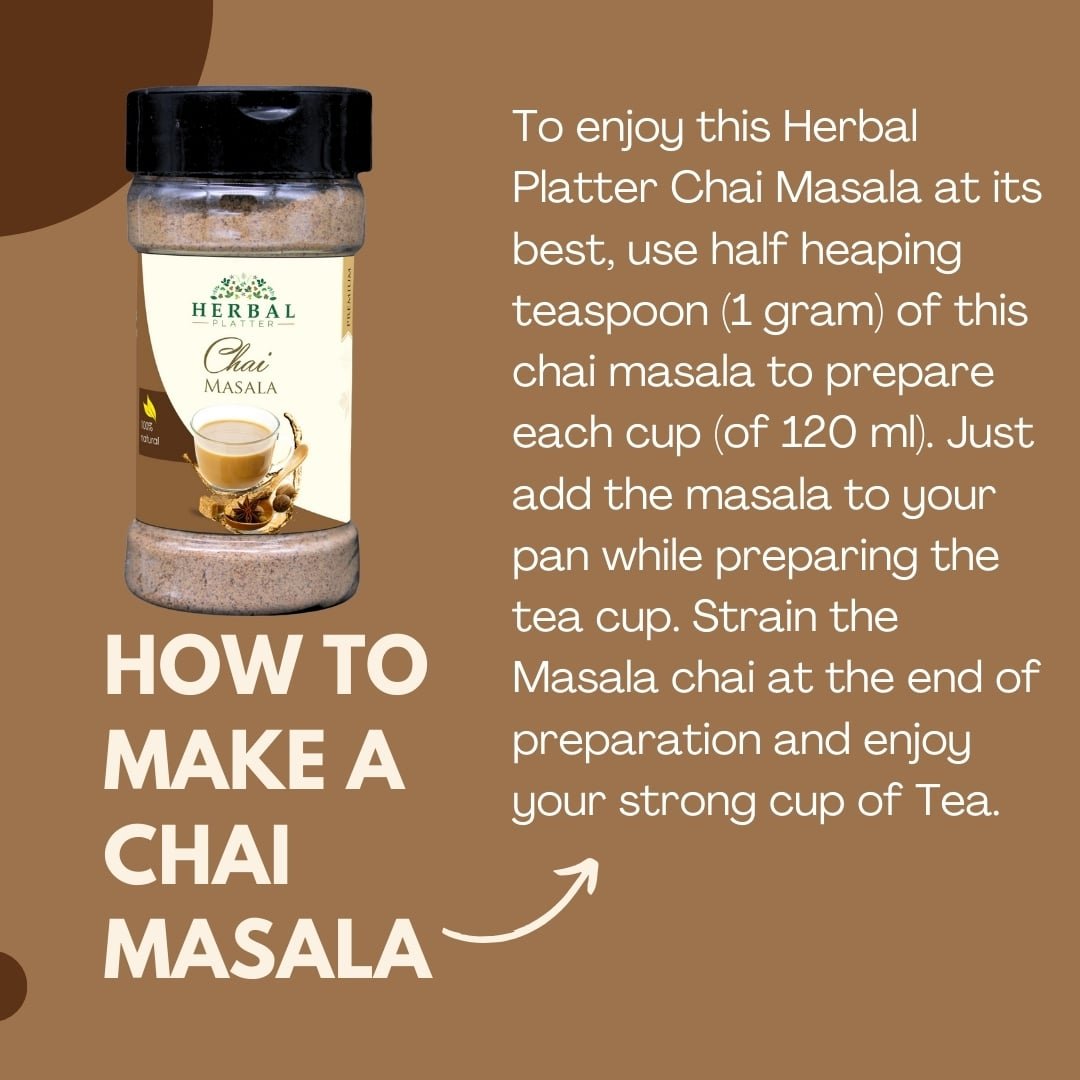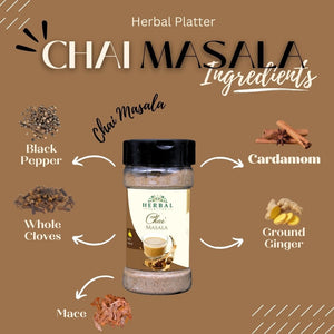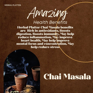 • Boosts digestion: Crafted with a medley of ginger, cardamom, and cinnamon, Herbal Platter Chai Masala is designed to support digestion and alleviate stomach discomfort, drawing from centuries of traditional wisdom.
