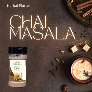 Herbal Platter Chai Masala, a delightful blend of aromatic spices crafted to elevate your tea-drinking experience to new heights. Our carefully curated combination of premium herbs and spices creates a harmonious symphony of flavors that dance on your palate with each sip. Infused with the warmth of cinnamon, the subtle heat of ginger, and the comforting essence of cloves, our Chai Masala transports you to a cozy haven with every indulgent sip. Cardamom adds a hint of exotic allure, while black pepper provides a gentle kick, awakening your senses and invigorating your spirit. Hand-selected ingredients ensure the highest quality and authenticity, capturing the essence of traditional Indian chai while offering a unique twist. Whether you enjoy it steeped in hot milk for a creamy treat or brewed strong for a robust flavor.