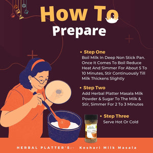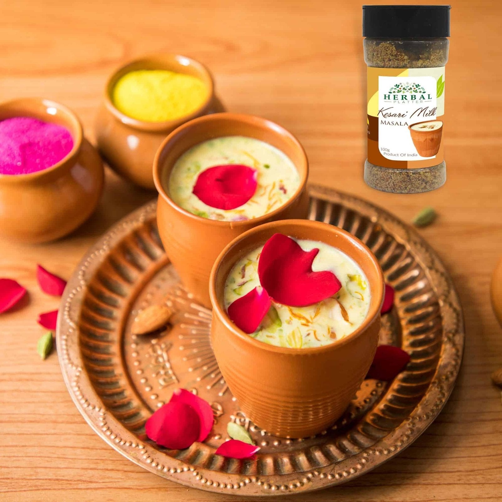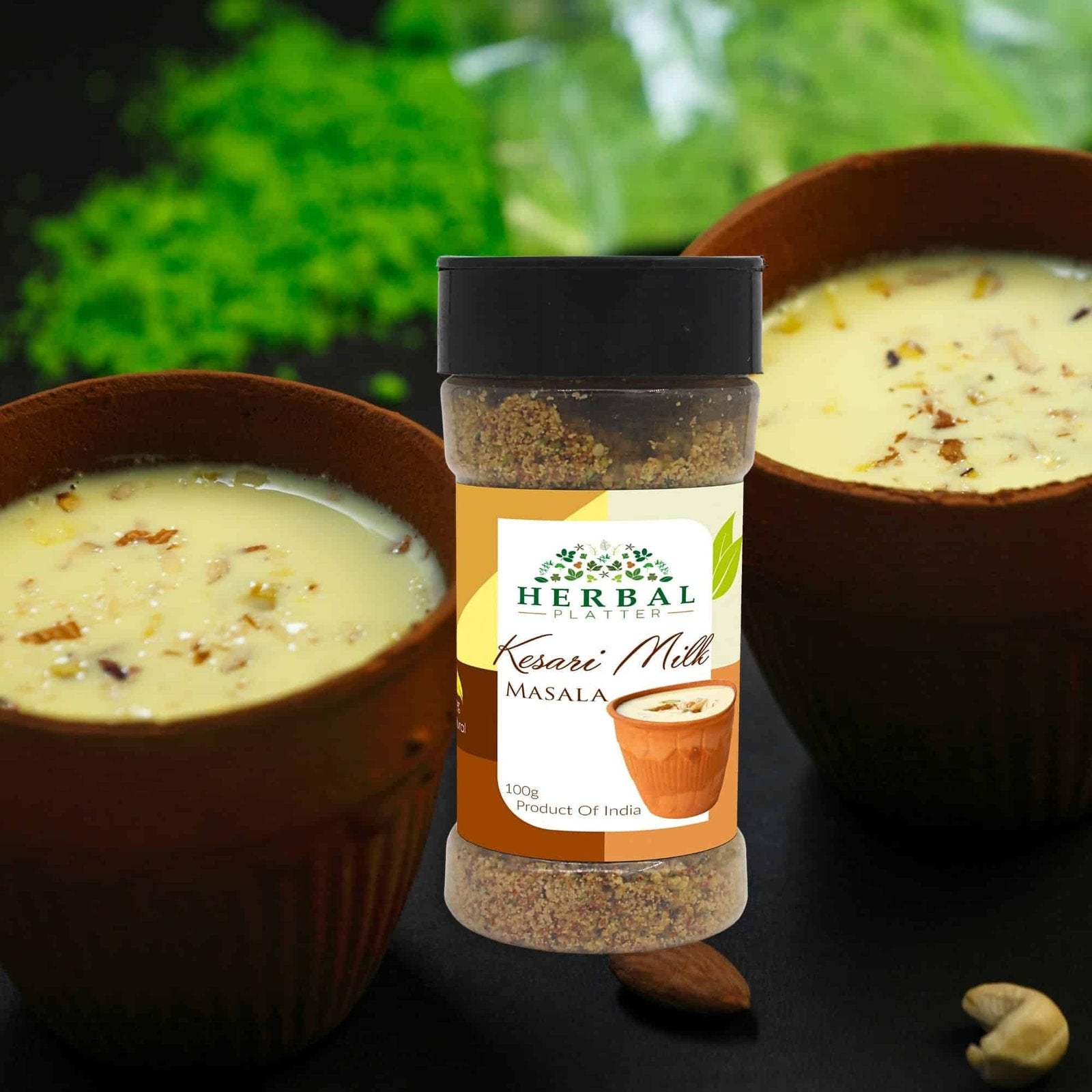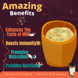 The Kesari Milk Masala can be easily added to your milk-based drinks like tea, coffee, lattes, and milkshakes. It can also be used in desserts like kheer, rabdi, and ice cream to add a unique flavor and aroma. With Herbal Platter's Kesari Milk Masala, you can enjoy the rich and exotic taste of Indian spices in the comfort of your home.
