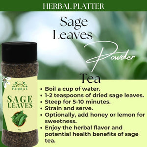 - Pure Herbal Goodness: Herbal Platter Sage Leaves Powder offers a natural and unadulterated source of sage goodness, straight from nature to your plate.