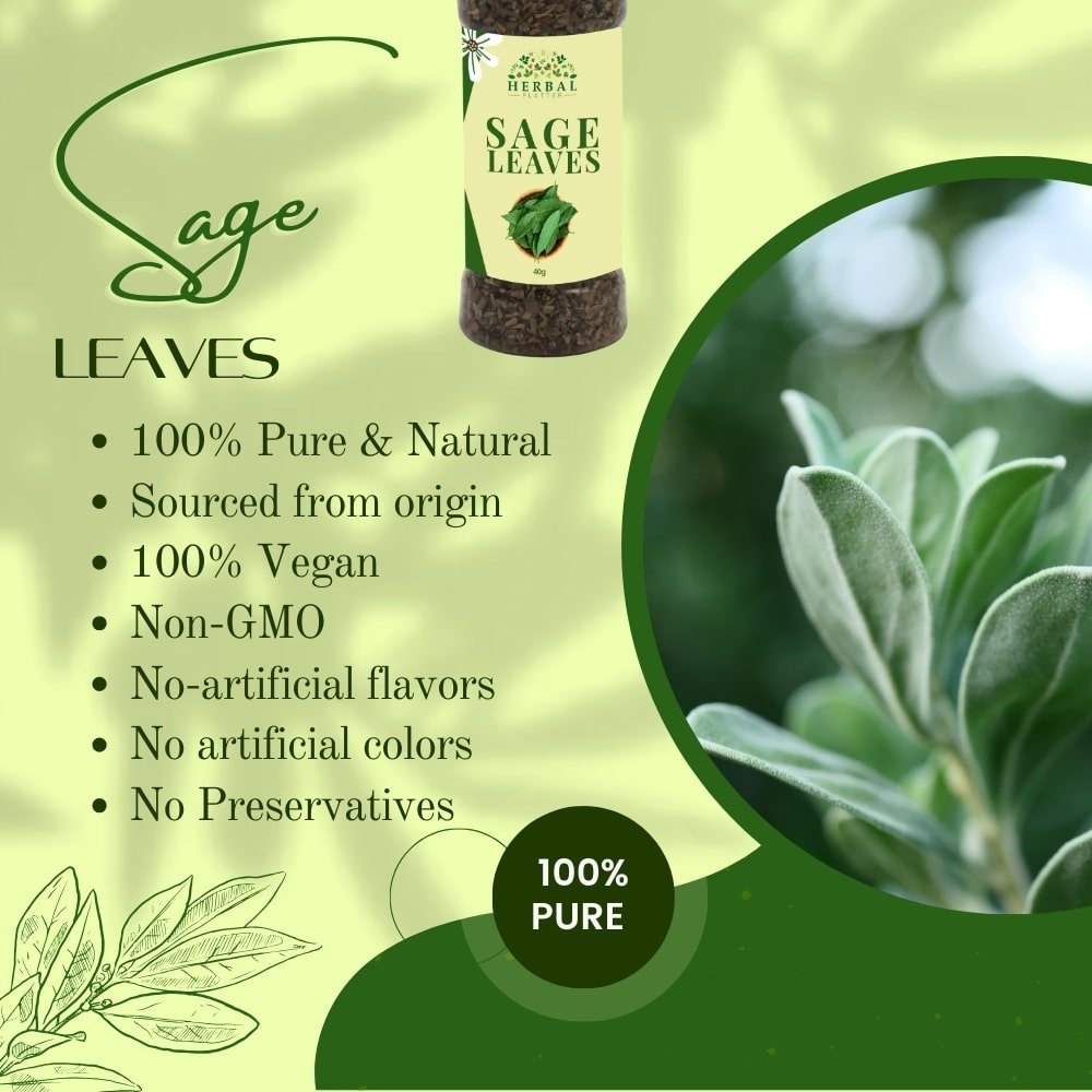 Sage Leaves 40g | Nature Secret for Wellness and Flavor Sage Herb Leaf Spice | Skin |Glow Herbal Iced Tea| Sage| smudging | Potpourri, 100% Natural