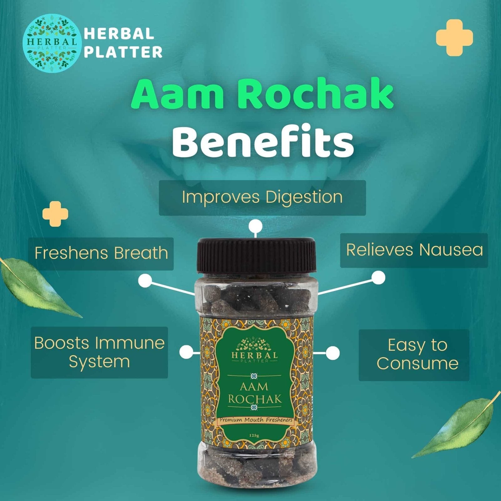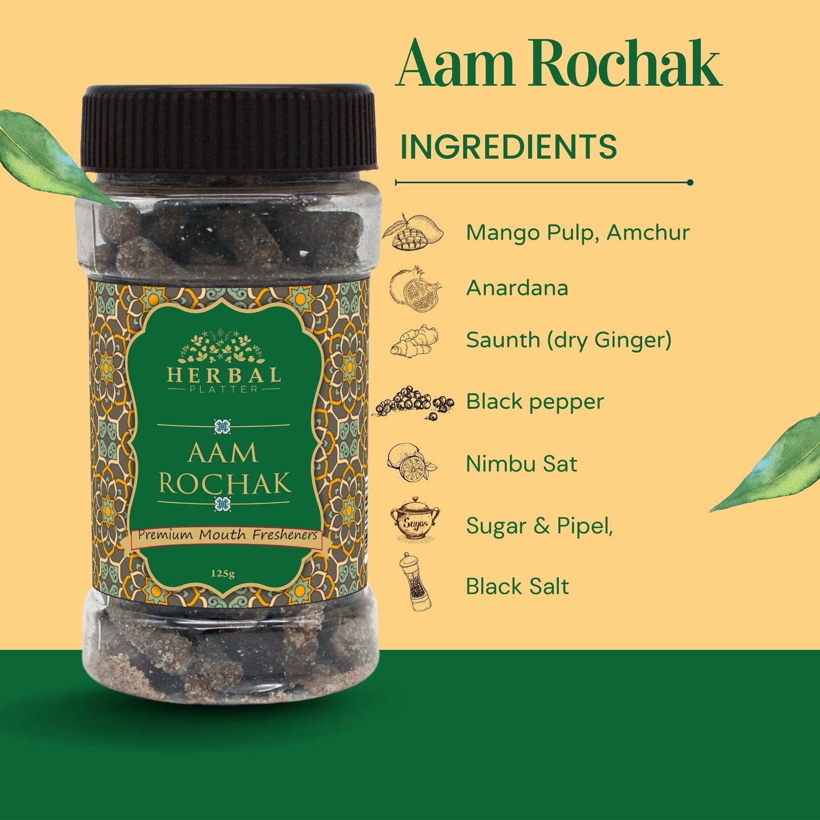 Herbal Platter Aam Rochak is a must-try for mango lovers and anyone seeking a refreshing and flavorful mouth freshener. With its irresistible taste, natural ingredients, and convenient packaging, it's the perfect snack to satisfy your mango cravings. Treat yourself to the delicious flavors of Aam Rochak and experience the joy it brings to your taste buds.
