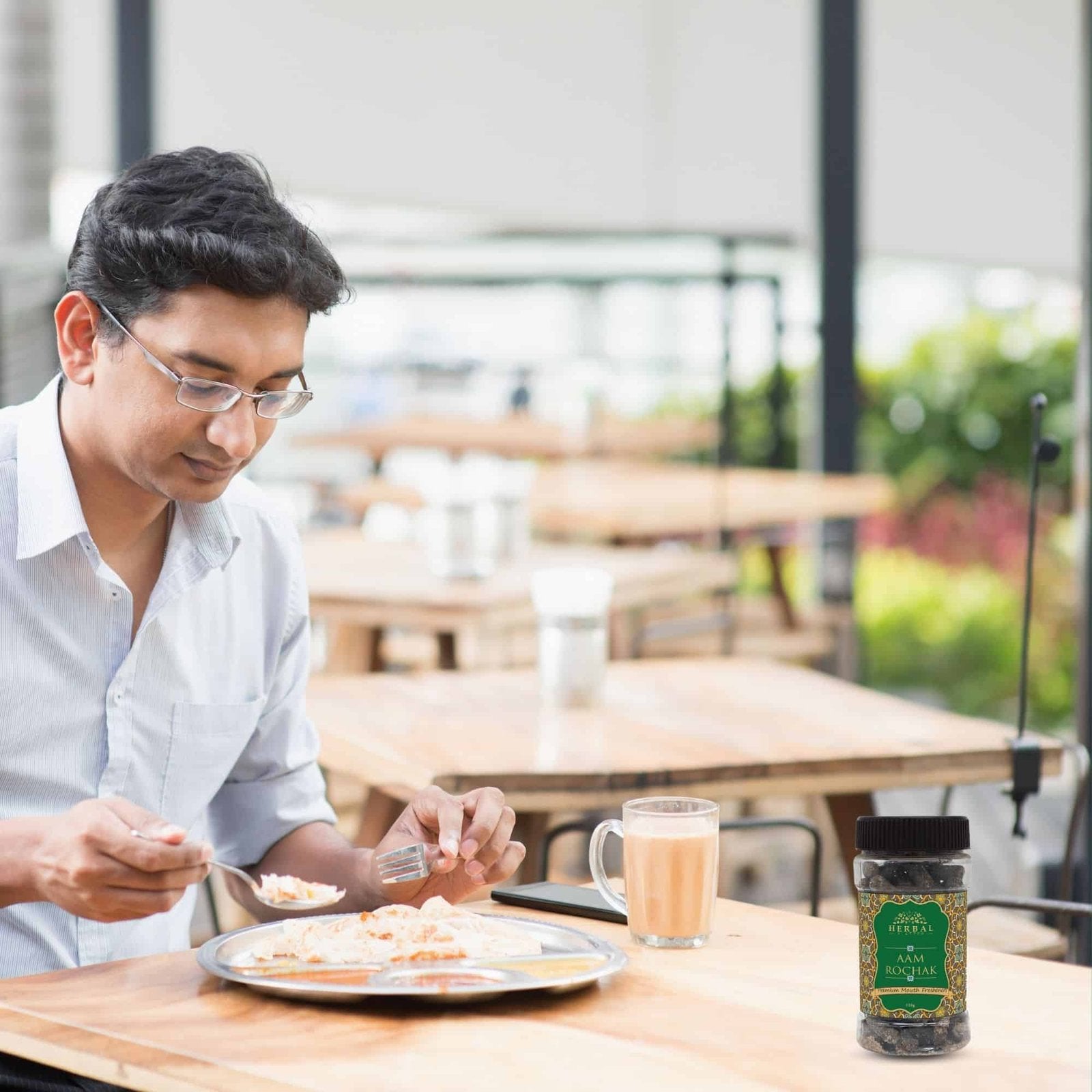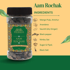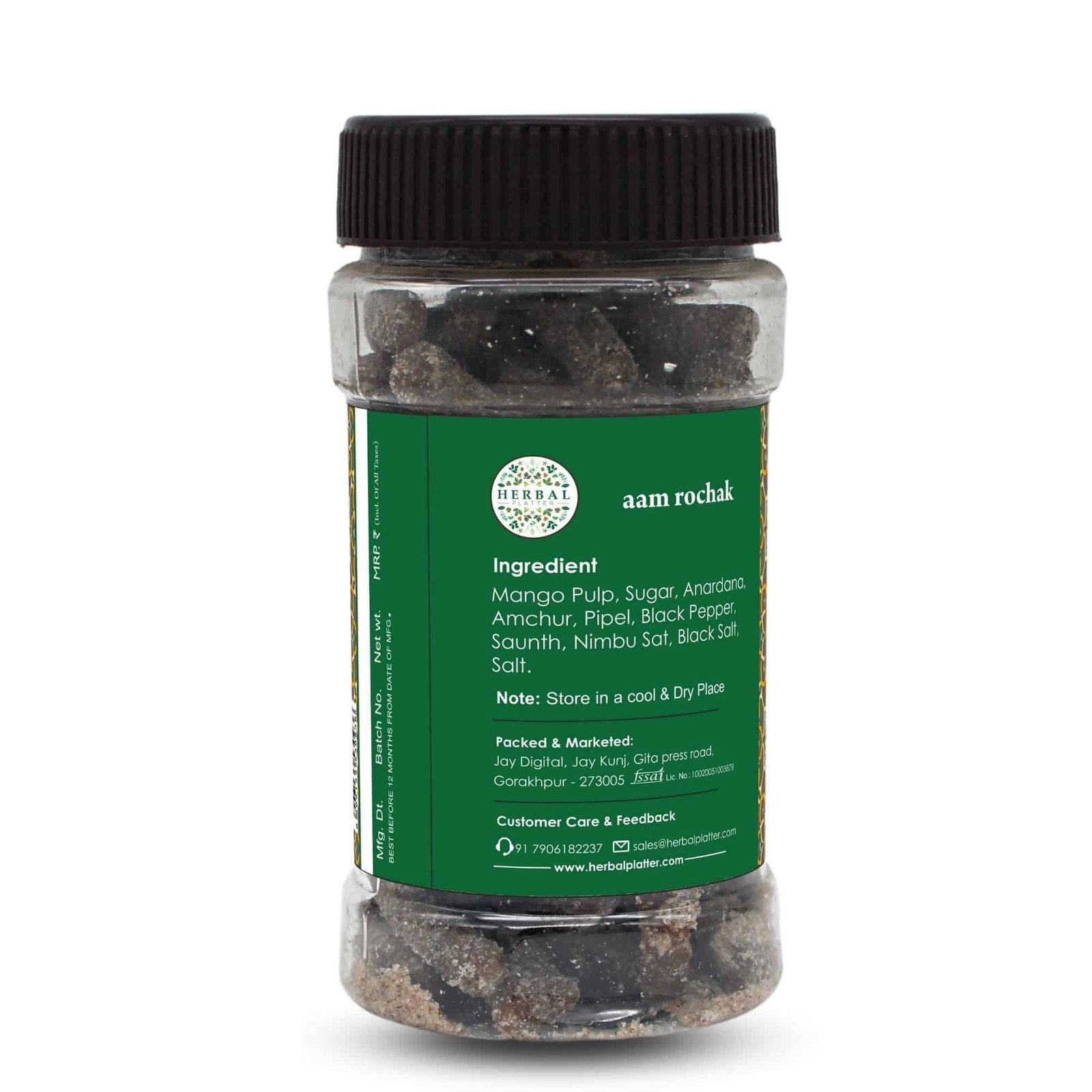 Indulge in the ultimate mango mouth freshener today. Try Herbal Platter Aam Rochak and let its chatpati Aam Papad slices take your taste buds on a flavorful journey. Elevate your snacking experience with the tangy and sweet delight of Aam Rochak.