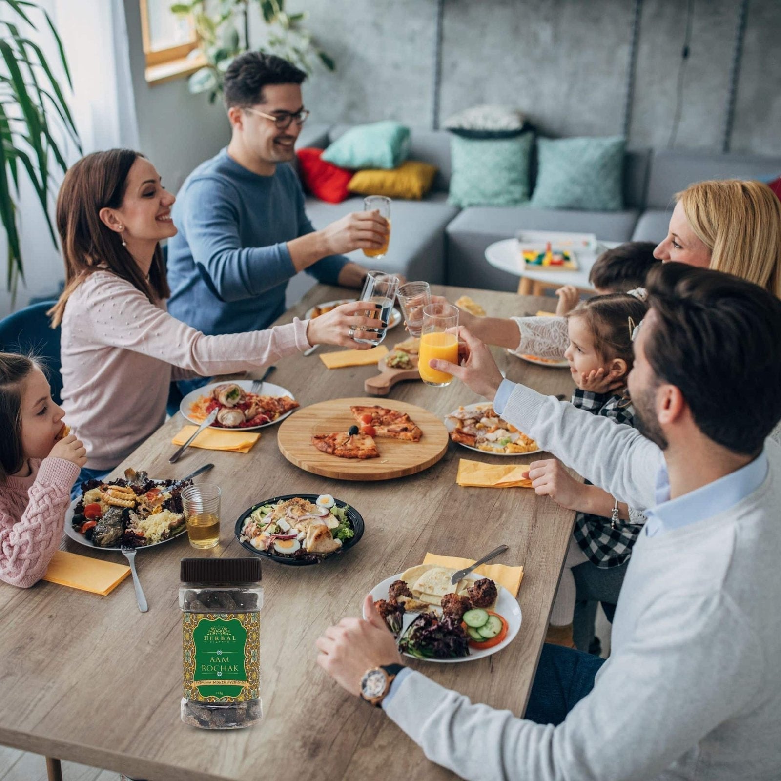 Embrace the versatility of Aam Rochak. Not only can you savor it as a mouth freshener, but you can also get creative with its usage. Sprinkle it on top of desserts, add it to chaats for an extra zing, or mix it with yogurt for a delightful twist. Let your culinary imagination run wild with Aam Rochak.