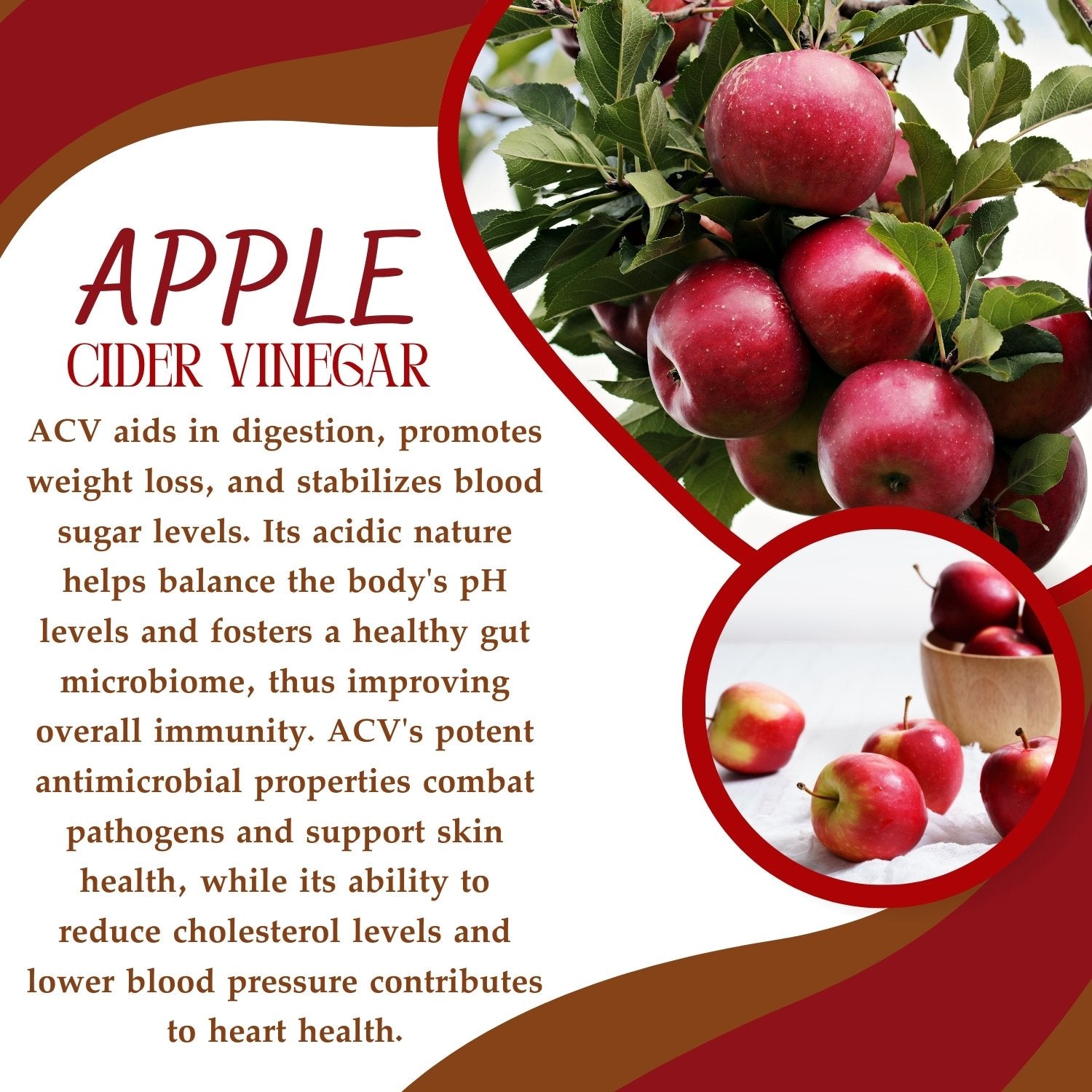 - Boosts Immune Function: Packed with antioxidants like vitamin C and polyphenols, our Apple Cider Vinegar helps strengthen the immune system, providing added defense against infections and illnesses.