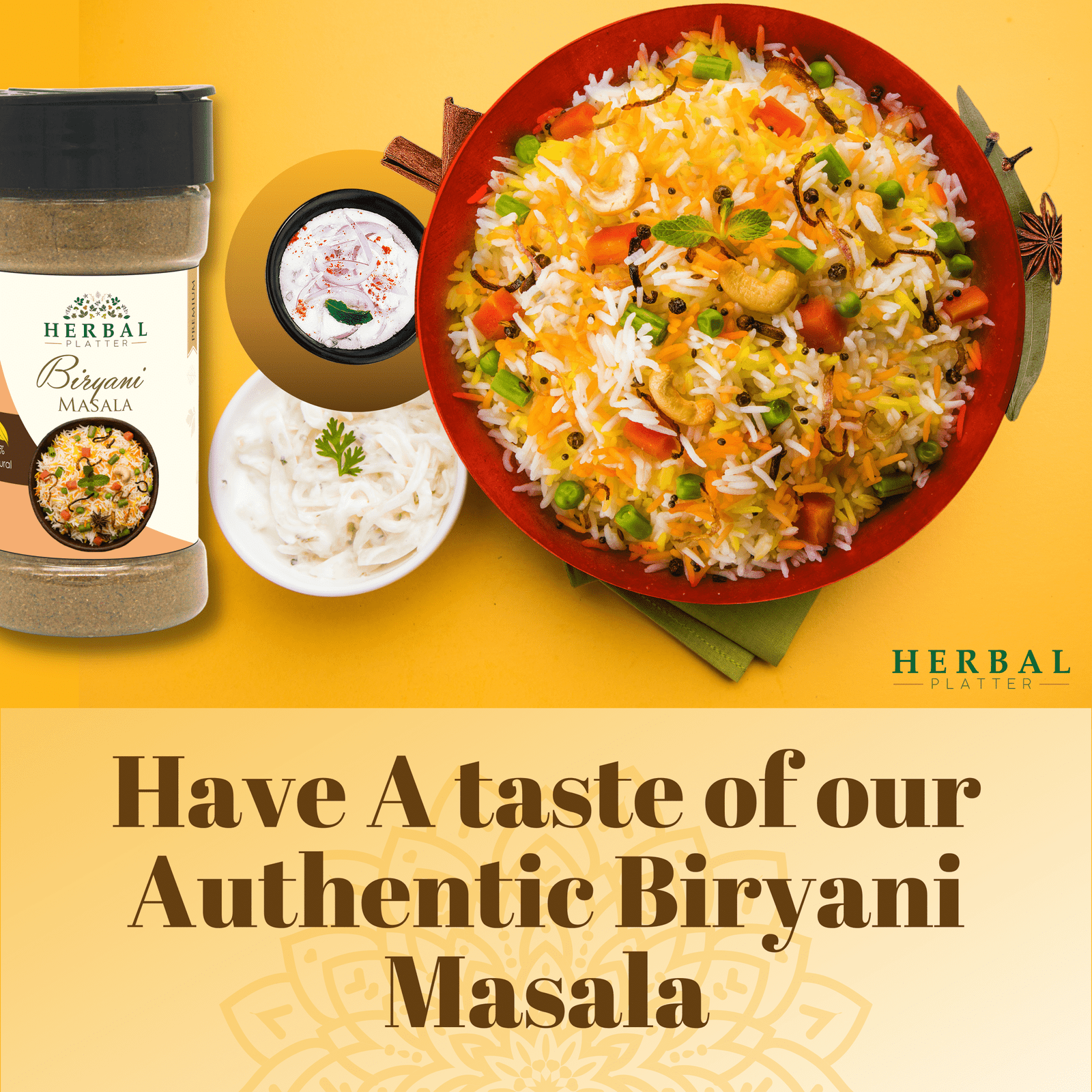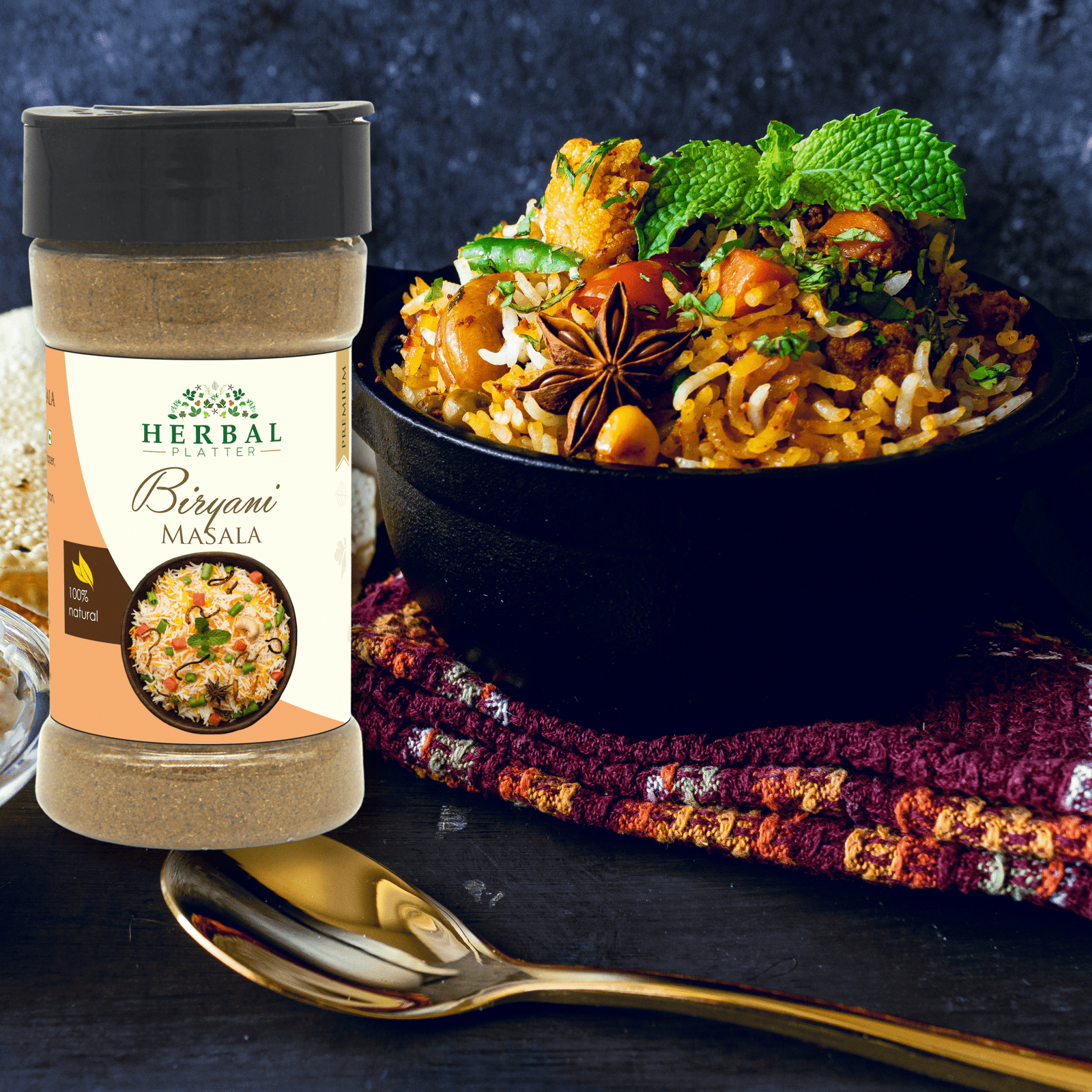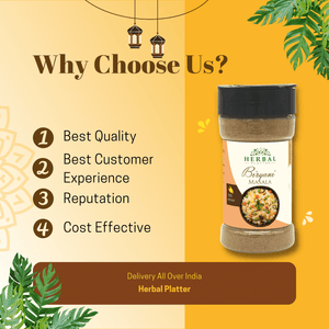 Spice up your meals with Herbal Platter's Biryani Masala - a culinary marvel that will take your taste buds on a flavorful journey! This authentic spice mix combines carefully selected aromatic spices to add a burst of irresistible taste and aroma to your favorite rice dishes. Showcasing the vibrant heritage of classic Indian spices, our Biryani Masala is perfectly balanced to capture the true essence of biryani, making it a must-have for your kitchen pantry!