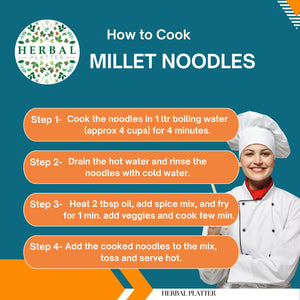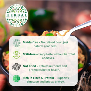 Introducing Herbal Platter Foxtail Millet Noodles – a deliciously healthy twist on your favourite snack! Made with wholesome Foxtail flour, whole wheat flour, cold-pressed oil and a dash of rock salt, these noodles are the perfect alternative to junk food. Plus, each packet comes with a tasty, savoury tastemaker that will make every bite a joy! A great choice for kids who deserve a healthier, yet scrumptious treat. Ready in minutes, they’re the perfect snack for fun-filled, guilt-free munching!