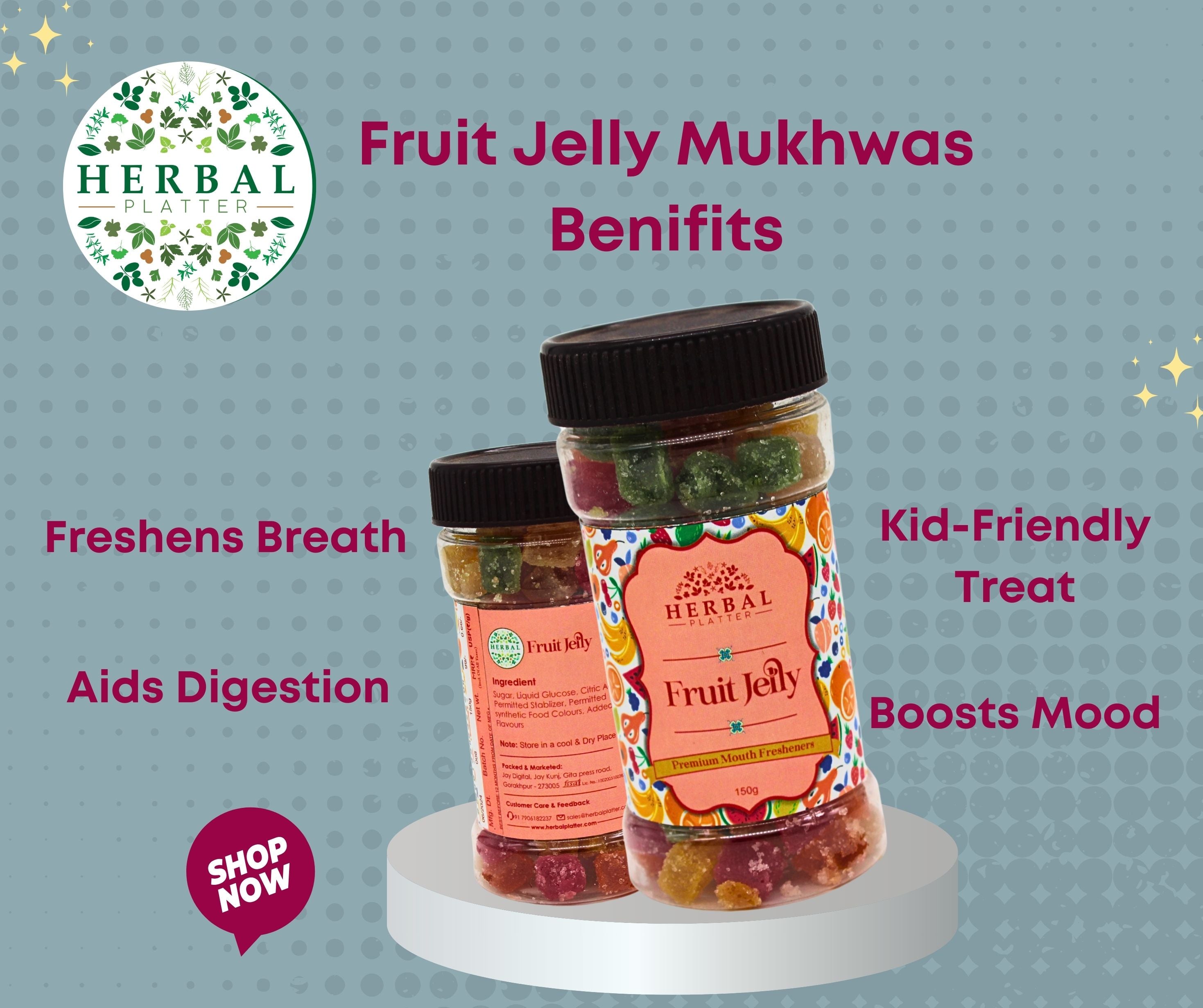 Fruit Jelly Mouth Freshener is a vibrant and flavorful treat that combines the goodness of natural fruit extracts with a medley of refreshing ingredients. Designed to tantalize your taste buds, this mouth freshener doubles as a digestive aid and a delightful snack, making it an ideal choice for all ages.