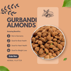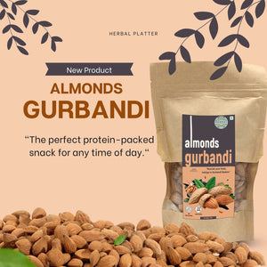 - FRESHNESS GUARANTEED: Herbal Platter Premium Gurbandi Almonds are carefully packaged in a 250g zipper pouch to ensure maximum freshness and flavor. You can rest assured that you're getting the best quality almonds available, with all of the nutrients and flavor you expect from a premium snack.