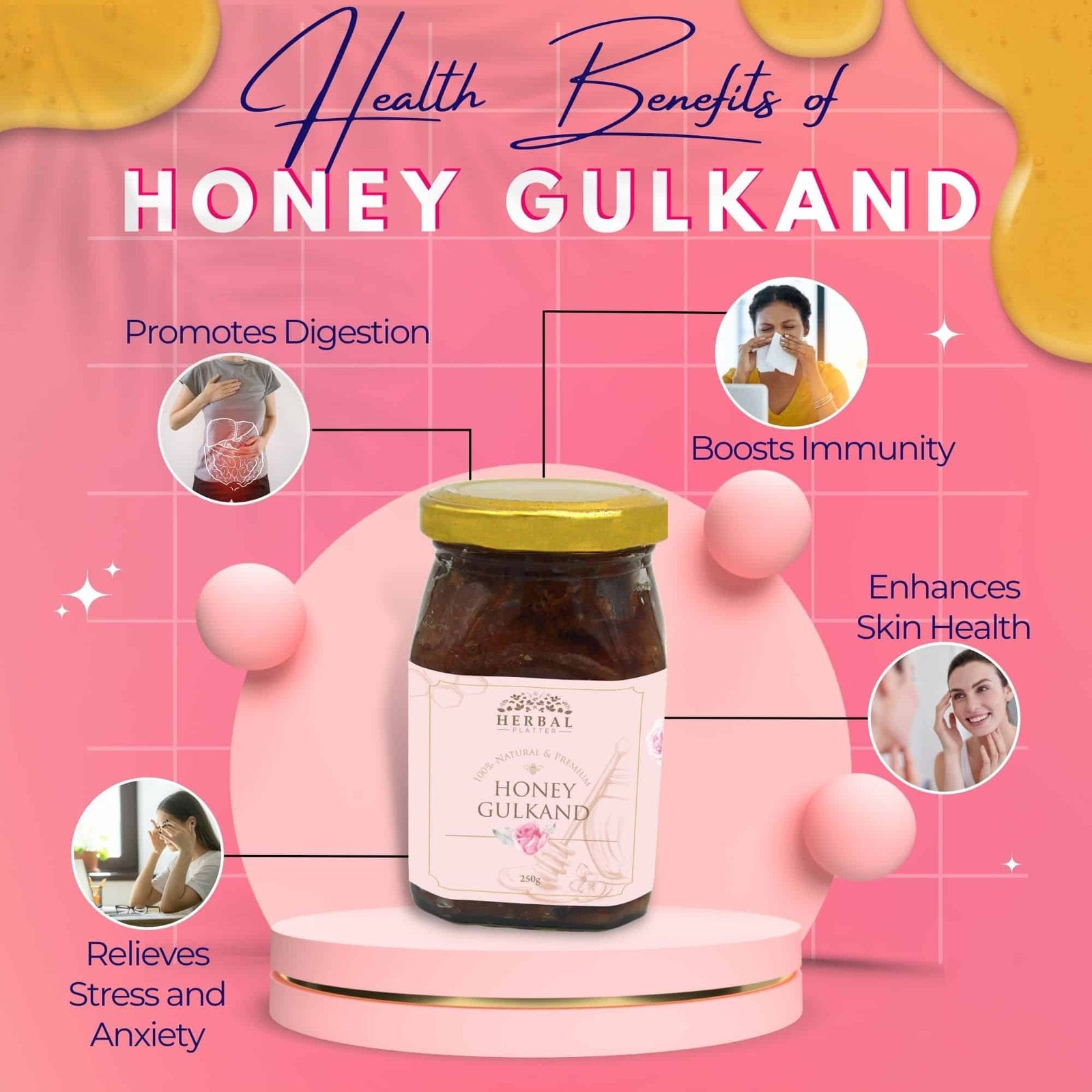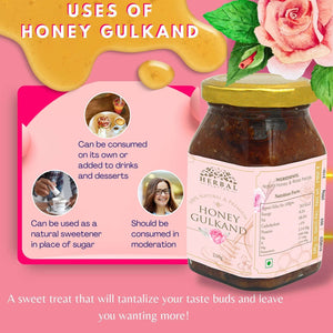 Herbal Platter Honey Gulkand is a natural health supplement made from the goodness of rose petals and honey. It comes in a 250g glass jar and is perfect for consumption during the hot summer months. The gulkand is a traditional Ayurvedic preparation that has been used for centuries for its cooling properties and health benefits. The combination of rose petals and honey creates a unique taste that is both delicious and healthy. The rose petals in the gulkand are known for their anti-inflammatory and anti-oxidant properties, which help to improve skin health, reduce wrinkles, and promote a healthy complexion. Honey, on the other hand, is a natural sweetener that is rich in natural sugars, vitamins, and minerals. It is also known for its natural antibacterial and anti-inflammatory properties, which make it an excellent addition to your daily diet. One of the primary benefits of Herbal Platter Honey Gulkand is its ability to improve digestion and regulate acidity. The combination of rose petals and honey helps to soothe the stomach and improve digestion, making it an excellent remedy for digestive issues. The gulkand is also a natural energy booster, thanks to the natural sugars present in honey. Consuming this gulkand can provide an instant energy boost and help you stay energized throughout the day. In addition to its health benefits, Herbal Platter Honey Gulkand is also a natural stress reliever. Honey has natural stress-relieving properties and consuming this gulkand may help to reduce stress levels and promote relaxation. Overall, Herbal Platter Honey Gulkand is a natural health supplement that provides a range of health benefits. It is perfect for consumption during the hot summer months and can help you stay healthy, energetic, and stress-free.