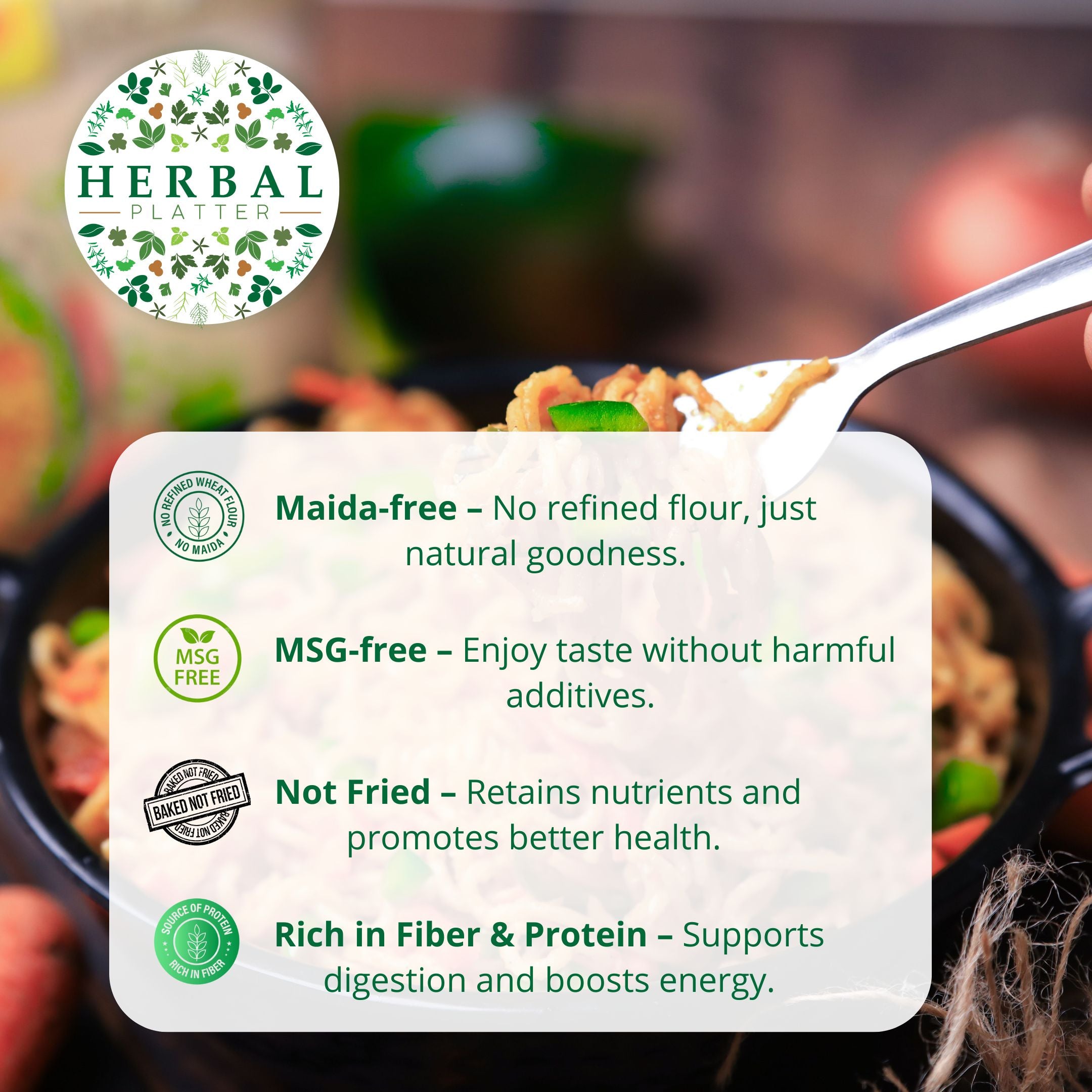 Introducing Herbal Platter Jowar Millet Noodles – a deliciously healthy twist on your favourite snack! Made with wholesome Jowar flour, whole wheat flour, cold-pressed oil and a dash of rock salt, these noodles are the perfect alternative to junk food. Plus, each packet comes with a tasty, savoury tastemaker that will make every bite a joy! A great choice for kids who deserve a healthier, yet scrumptious treat. Ready in minutes, they’re the perfect snack for fun-filled, guilt-free munching!