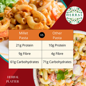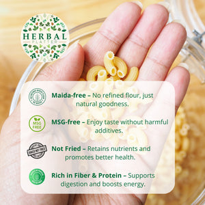 Introducing Herbal Platter Jowar Millet Pasta – a deliciously healthy twist on your favorite snack! Made with wholesome Foxtail flour, whole wheat flour, and a dash of rock salt, these Pasta are the perfect alternative to junk food. Plus, each packet comes with a tasty, savory tastemaker that will make every bite a joy! A great choice for kids who deserve a healthier, yet scrumptious treat. Ready in minutes, they’re the perfect snack for fun-filled, guilt-free munching!