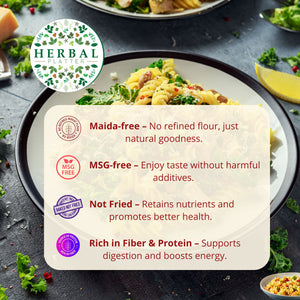 Introducing Herbal Platter Little Millet Pasta – a deliciously healthy twist on your favorite snack! Made with wholesome Millet flour, whole wheat flour, and a dash of rock salt, these pasta are the perfect alternative to junk food. Plus, each packet comes with a tasty, savory tastemaker that will make every bite a joy! A great choice for kids who deserve a healthier, yet scrumptious treat. Ready in minutes, they’re the perfect snack for fun-filled, guilt-free munching!