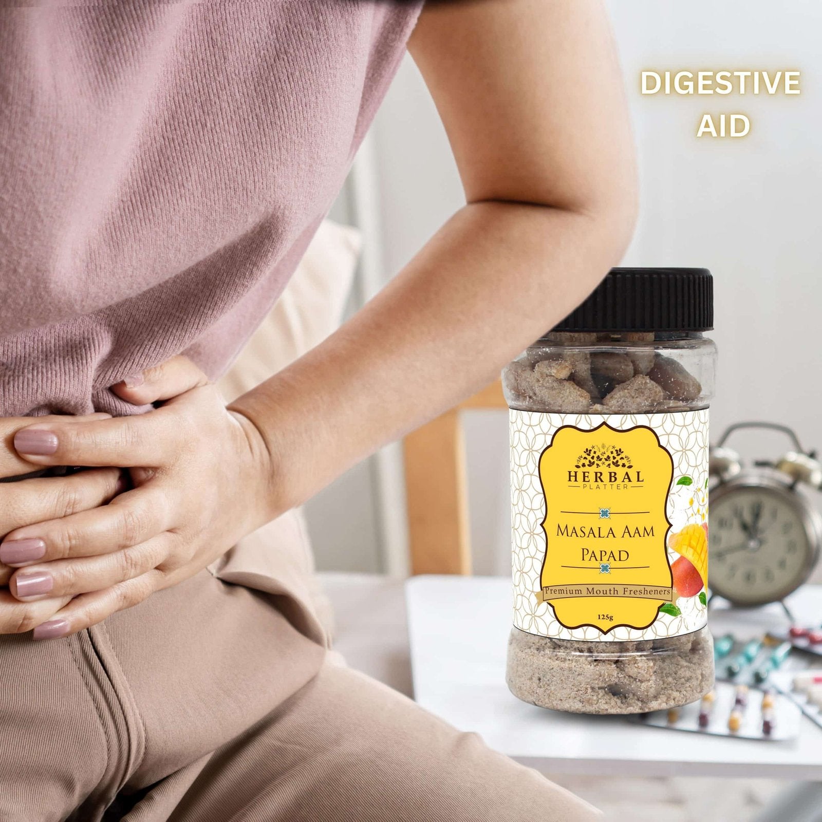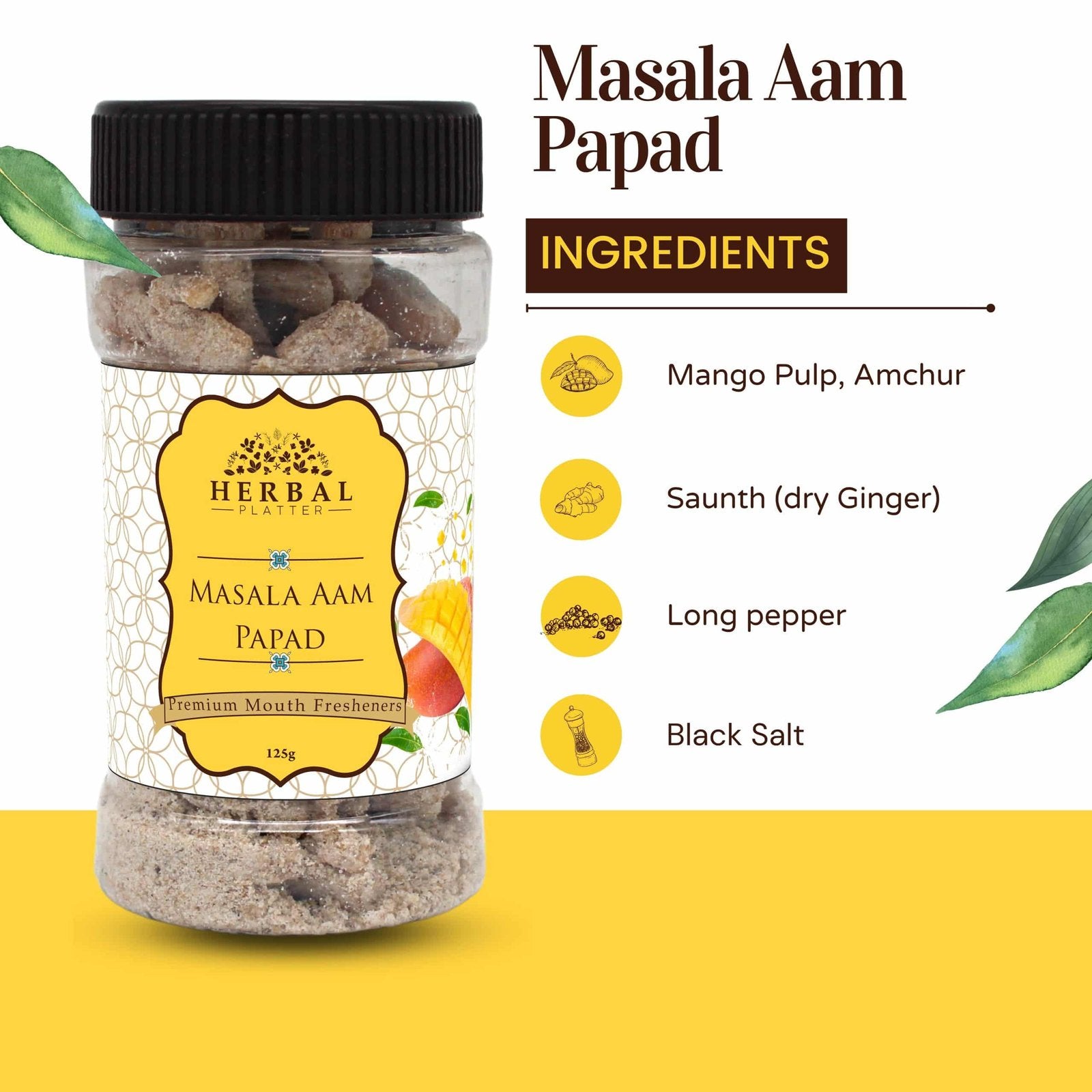 Indulge in the Irresistible: Immerse yourself in the goodness of our Herbal Platter Masala Aam-Papad Mouth Freshener, a delightful combination of traditional taste and modern convenience. Elevate your post-meal experience with the invigorating flavors of Masala Aam Papad and make every moment a memorable one. Order now and embrace the taste of India's favorite flavors in a whole new avatar! Why Choose Our Masala Aam Papad Mukhwas