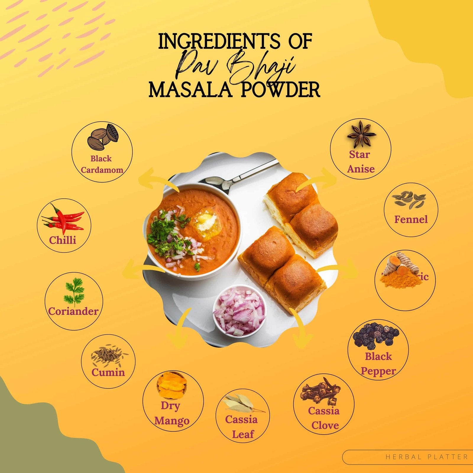 Greetings, food enthusiasts! At Herbal Platter, we take immense pride in presenting our mouthwatering delight - Pav Bhaji Masala. Infused with an exquisite blend of handpicked herbs and spices, this traditional Indian delicacy is a true celebration of flavors.