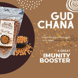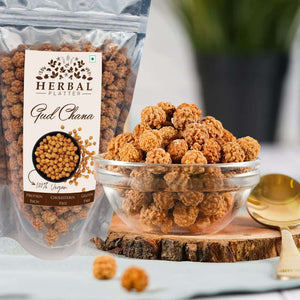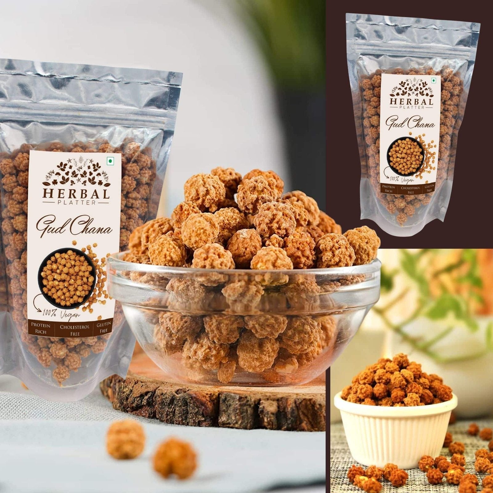 Indulge in the deliciously nutritious goodness of Herbal Platter Premium Gud Chana. Every bite offers a burst of flavors, thanks to the natural sweetness of jaggery and the nutty goodness of roasted chickpeas. It's a delightful snack that satisfies your cravings and leaves you feeling satisfied.