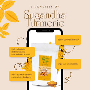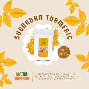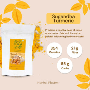 Embrace the power of turmeric with Herbal Platter Premium Sugandha Turmeric Powder. Enhance your culinary creations, support your overall wellness, and indulge in the richness of flavor and aroma that our turmeric powder brings. Elevate your dishes to new heights and experience the incredible benefits of our premium turmeric powder. Your journey to a healthier, more vibrant life starts here!