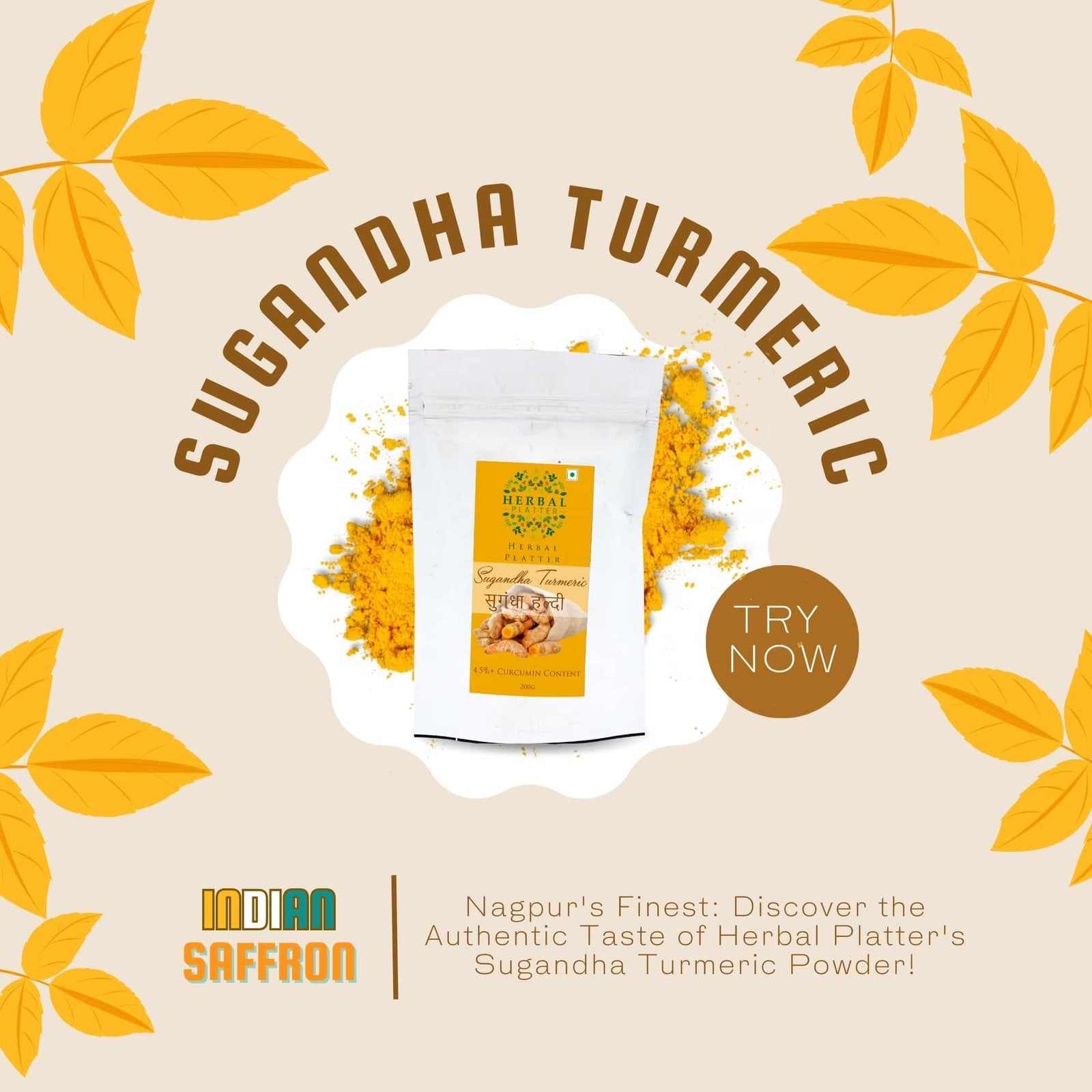 Are you ready to experience the incredible benefits of Herbal Platter Premium Sugandha Turmeric Powder? Look no further! Our meticulously sourced and carefully crafted turmeric powder is here to elevate your culinary creations and support your overall health and wellness journey.