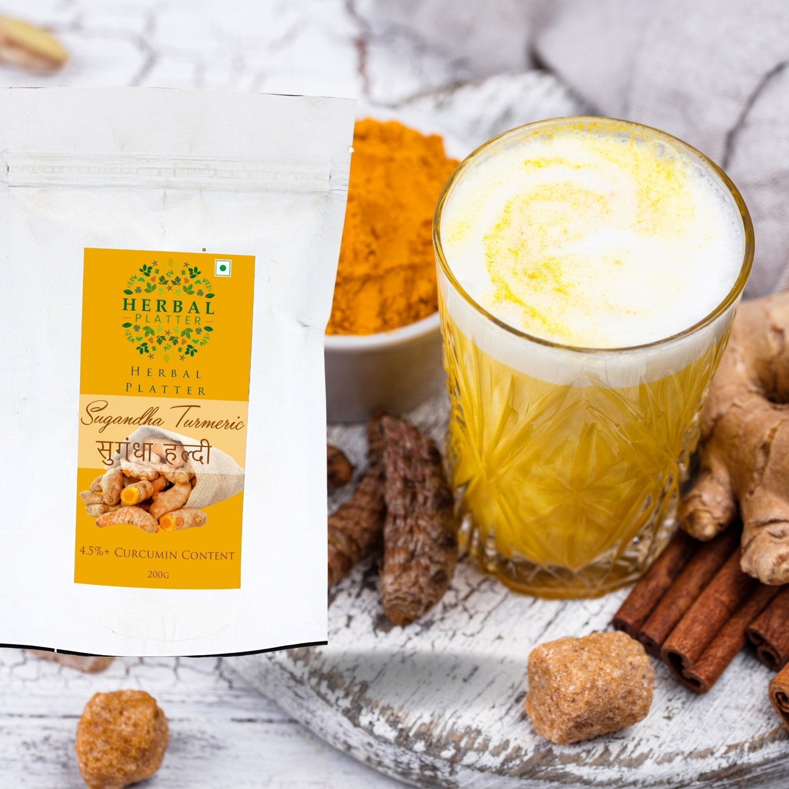 Herbal Platter Premium Sugandha Turmeric Powder comes in a convenient 200g stand-up pouch, designed to keep the powder fresh and easily accessible. We understand the importance of preserving the flavor and quality of our turmeric powder, ensuring that you can enjoy its benefits for an extended period. With our carefully crafted packaging, you can be confident that each use will be as fresh and flavorful as the first.