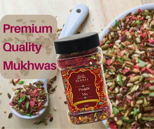 Typically, Punjabi Mix Mouth Freshener includes ingredients like fennel seeds (saunf), roasted coriander, cumin seeds, cardamom, cloves, dried rose petals, and a touch of sugar or jaggery for sweetness. The combination of spices adds a delightful warmth and zing, while the inclusion of dried fruits like raisins, almonds, or cashews brings a rich texture and nuttiness to the mix. Some versions may also feature a hint of mint or saffron for an extra refreshing flavour profile.