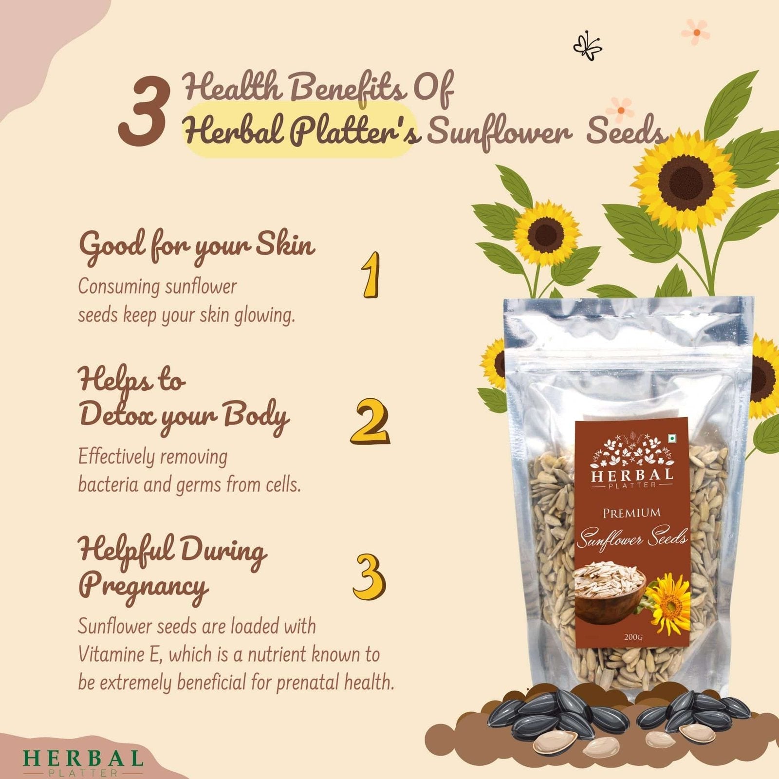 - NUTRIENT-RICH SUPERFOOD: Herbal Platter Raw Premium Sunflower Seeds are a nutritional powerhouse. Packed with essential vitamins, minerals, and healthy fats, these seeds provide a wide array of nutrients that nourish your body and support overall well-being. From vitamin E to magnesium and selenium, these seeds have you covered.