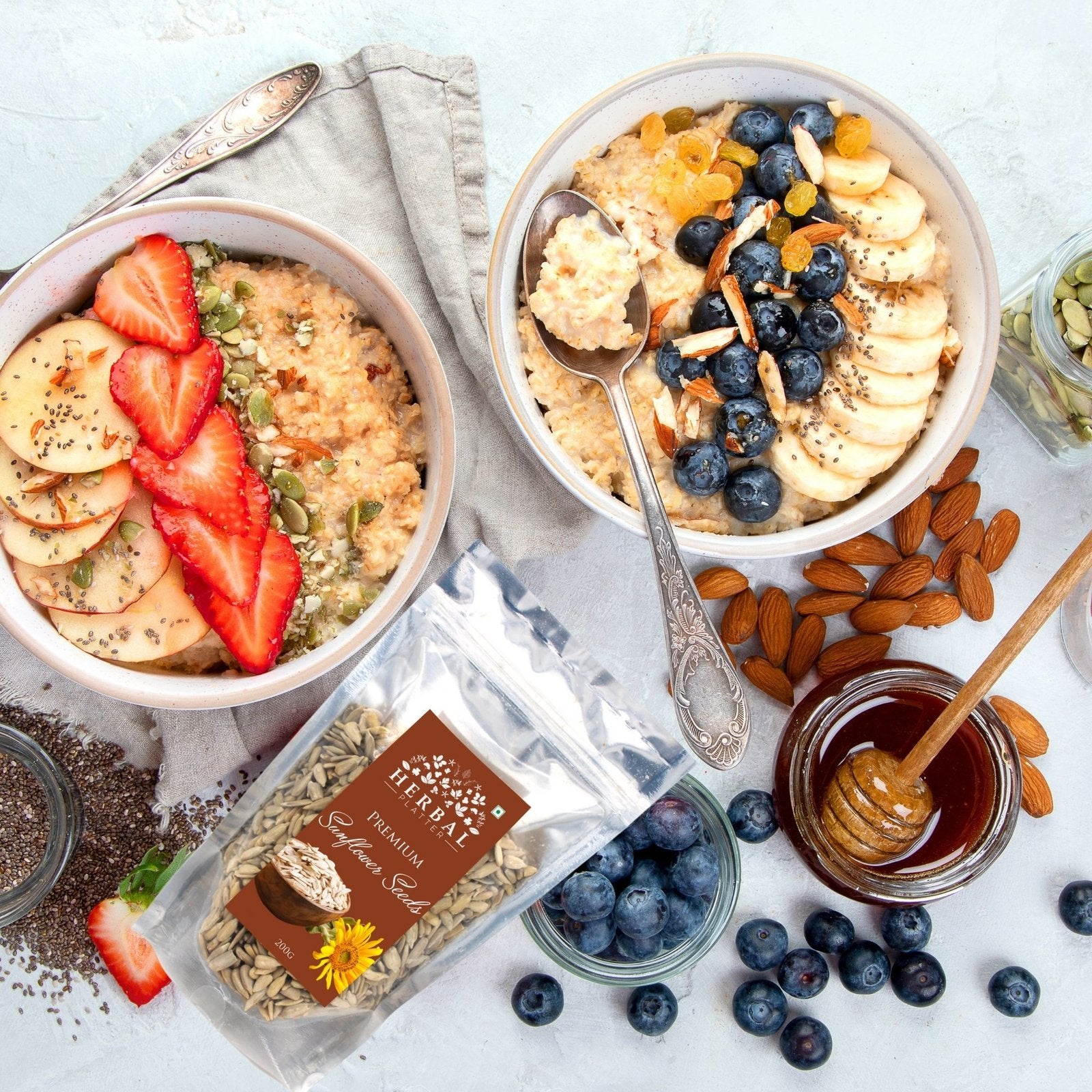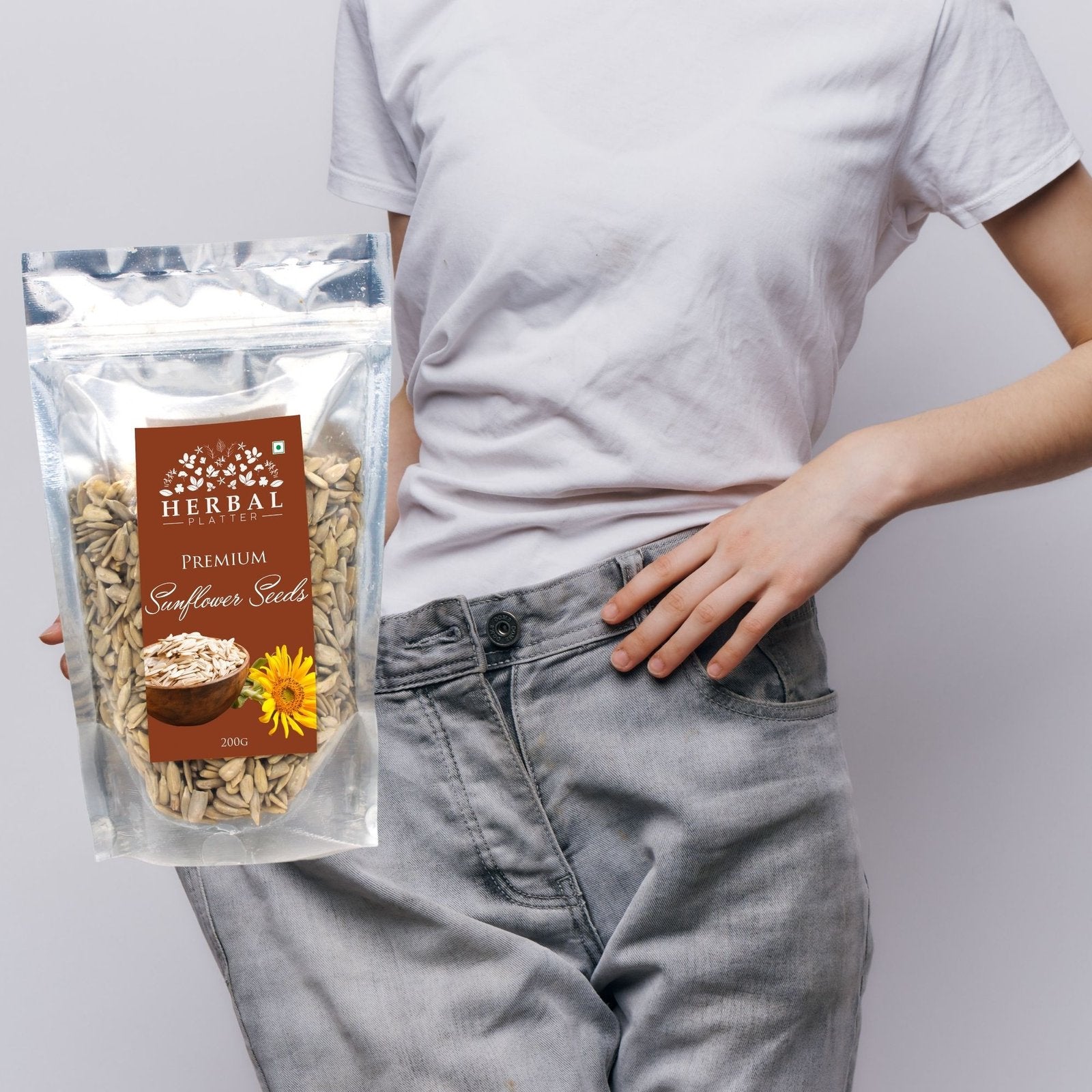 - VERSATILITY AND CONVENIENCE: Herbal Platter Raw Premium Sunflower Seeds are incredibly versatile. Enjoy them as a standalone snack, sprinkle them over salads, blend them into smoothies, or use them as a topping for your favorite dishes. The 200g standup pouch with a zipper ensures convenience and keeps the seeds fresh, making them the perfect on-the-go snack.